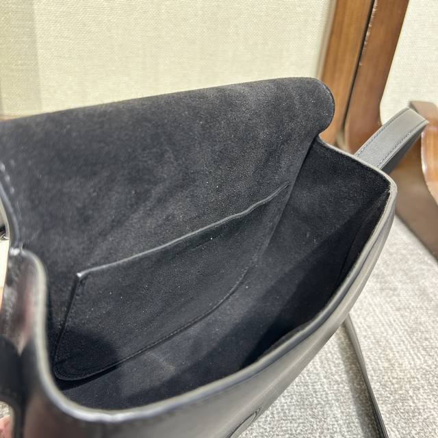 Made of cowhide with a matte lining, the flap features a magnetic clasp, making it easy to open and close with one hand. It can be carried crossbody or on the shoulder, with an adjustable 52cm strap.