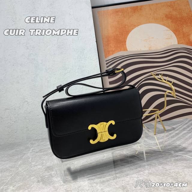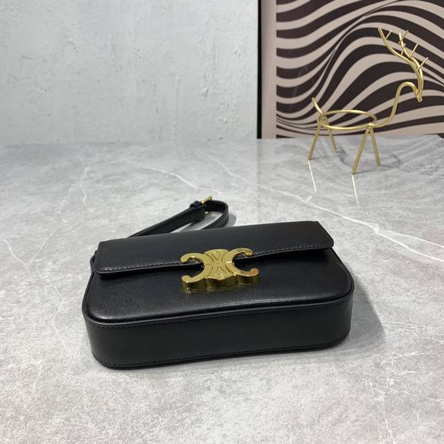 Factory price, highest edition, original leather, top-grade original order, with complete counter packaging. The latest Celine Triomphe Shoulder Bag S is an elegant and gentle shoulder bag with a refined look. The rectangular silhouette exudes a retro feel, creating a sophisticated look with any outfit. Material: cowhide leather, sheepskin lining. Shoulder bag. Triomphe metal lock clasp, interior flat pocket, and adjustable leather shoulder strap with a length of 20cm. Dimensions: 20*10*4cm.