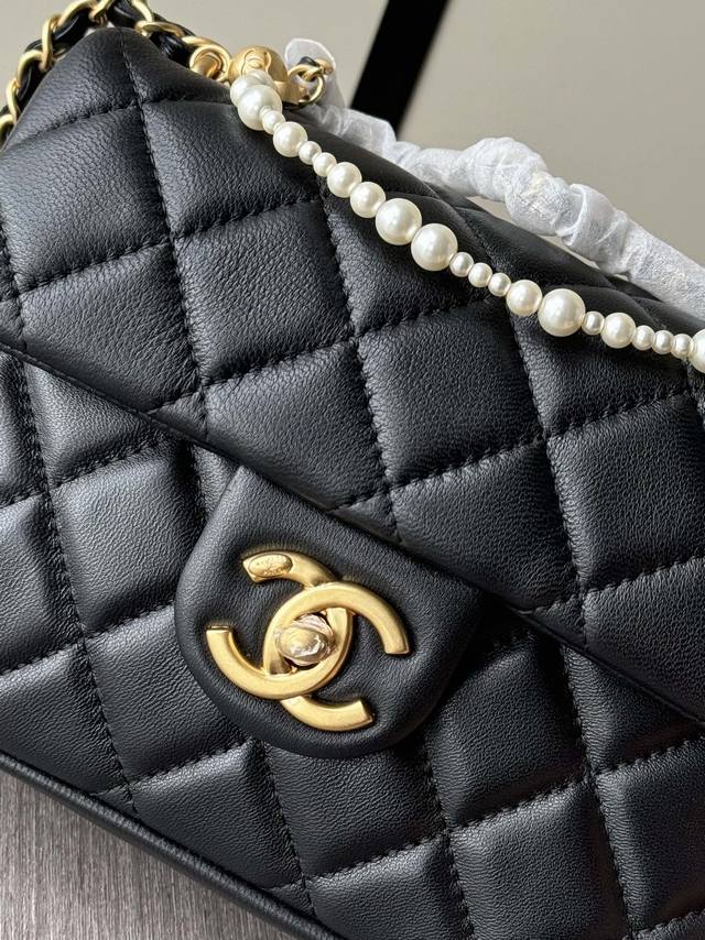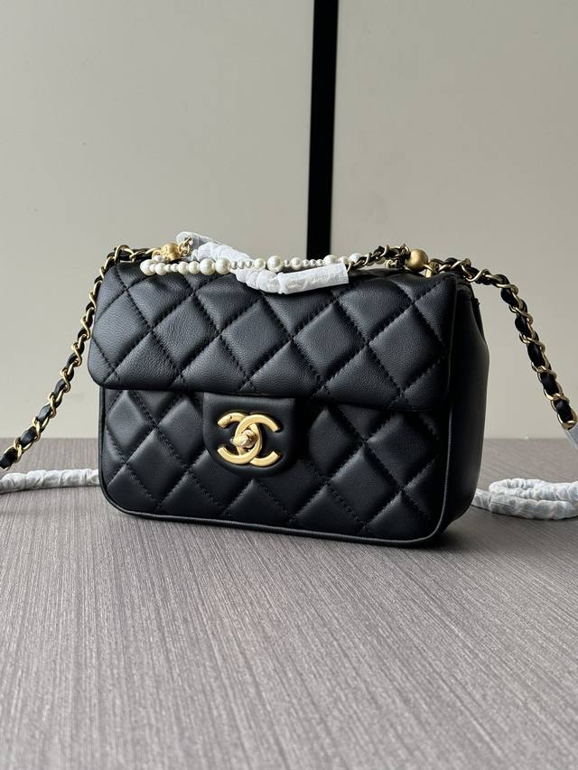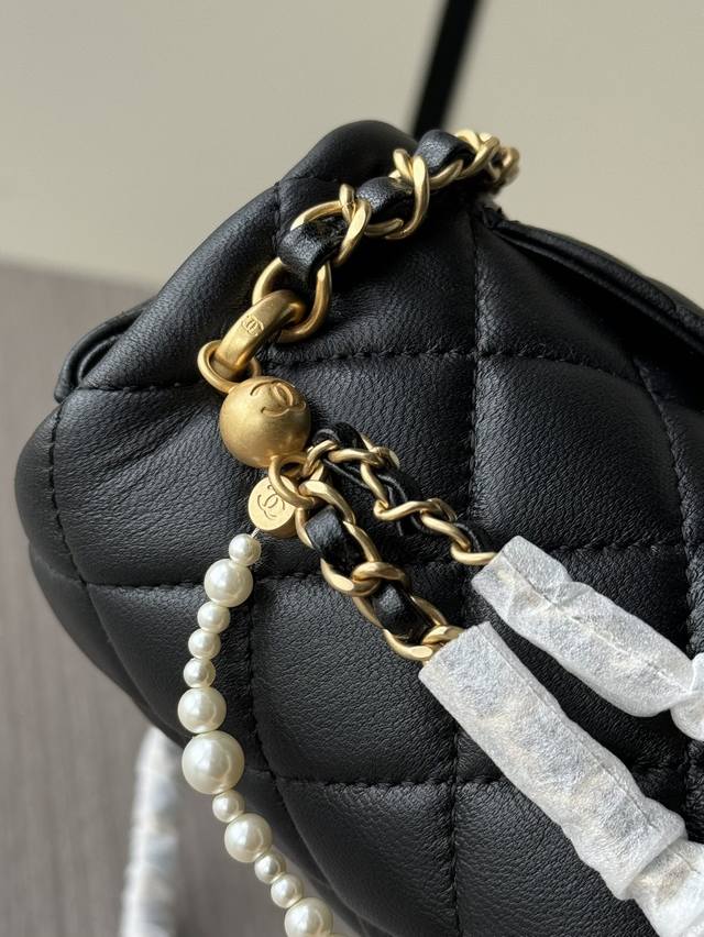 Chane1 Spring/Summer Collection 24p Pearl Chain Mini AS4385 The pearl chain matches the overall black and gold color scheme, making it more elegant and noble. This square fat man is so beautiful. You can also carry it on your upper body. It is really amazing. It is very small and exquisite. The actual object is super beautiful. Dimensions: 12.5