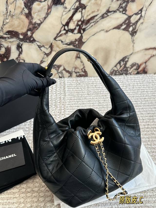 Chanel 26C Hobo Bag Ddd This is a Chanel 26C Hobo bag, made of black leather with a quilted design, featuring a gold double C logo and chain embellishment. This bag is lightweight and spacious, suitable for everyday use or travel. It debuted in Chanel's 2026 Cruise Collection, blending fashion and practicality. Ddd For care, it is recommended to avoid prolonged exposure to sunlight and regularly wipe the surface with a soft cloth to maintain its shine and texture. It is best to store it in a dust bag to prevent dust and scratches. Ddd 20cm 26cm No Box DDD