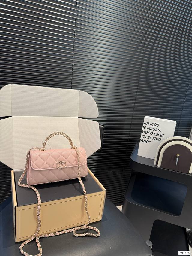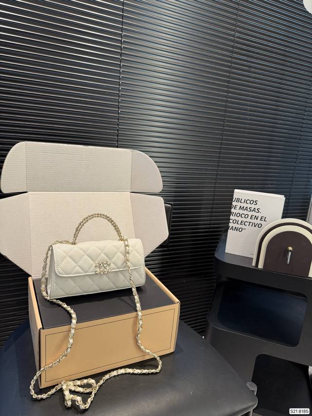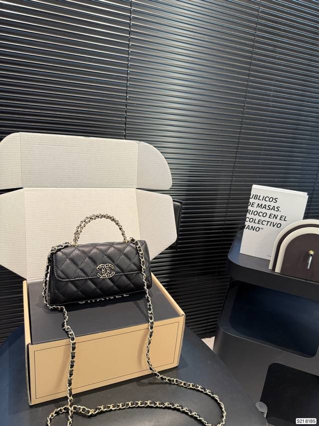 Chanel handbag with folding box and airplane case. People fall in love with Chanel repeatedly at every stage of life. Who doesn't love Chanel? You can never resist its charm. No matter how long it's been, you'll always fall in love with it. It's beautiful whether carried by hand or crossbody, and you can even put your phone in it. So charming for everyday outings! Size: 19 x 9.5 cm. Item number: 8185.