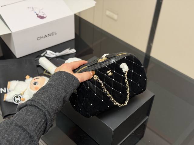 Comes with a folding box DDD Chanel 25p velvet bowling bag Ddd The quilted pattern is highly recognizable. Cylindrical shape, just the right capacity, even fits a Pro Max phone. The chain shoulder strap is detachable, so it can be carried by hand, over the shoulder, or crossbody