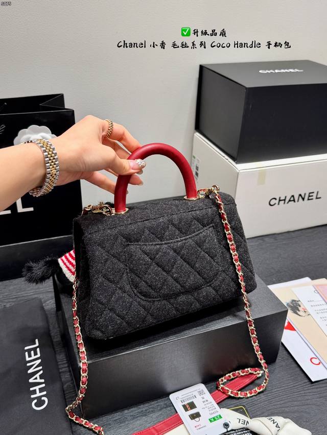 Folding Gift Box Black Horse Pendant 15 Ddd Upgraded Quality Ddd Chanel Felt Series Coco Handle Red Handle Bag, Selzburg Tweed Style Ddd Black felt + red handle, classic diamond quilting + light gold double C buckle, elegant and retro temperament full of marks. Hand-carry or crossbody, the chain and red leather interlacing design is very recognizable! The internal accordion-style dividers are convenient for storage, and can be easily handled for daily outings or formal occasions. The red handle brightens up the look, and it has a great atmosphere for autumn and winter Ddd Size 21*14Cm DDD