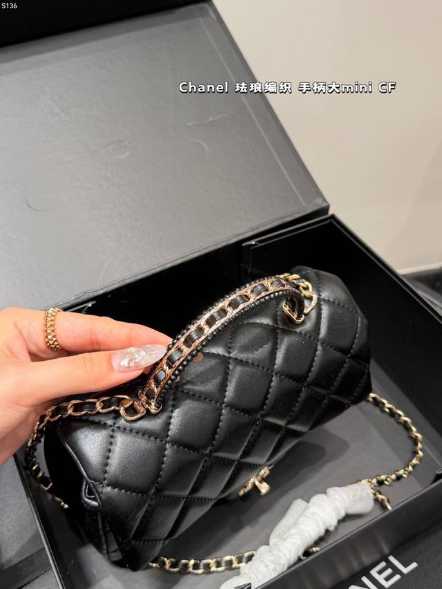 Chanel Cf Large Mini Woven Metal Handle Square Fat Bag Cf Handle