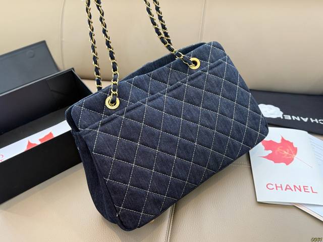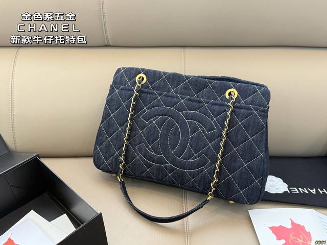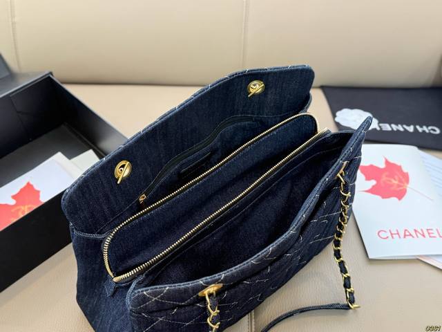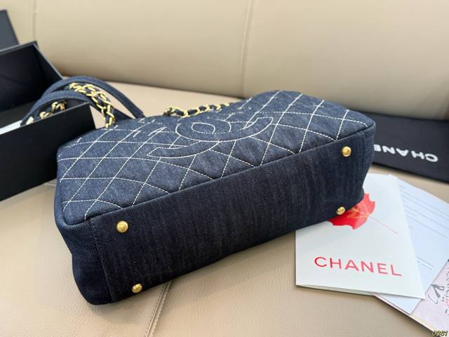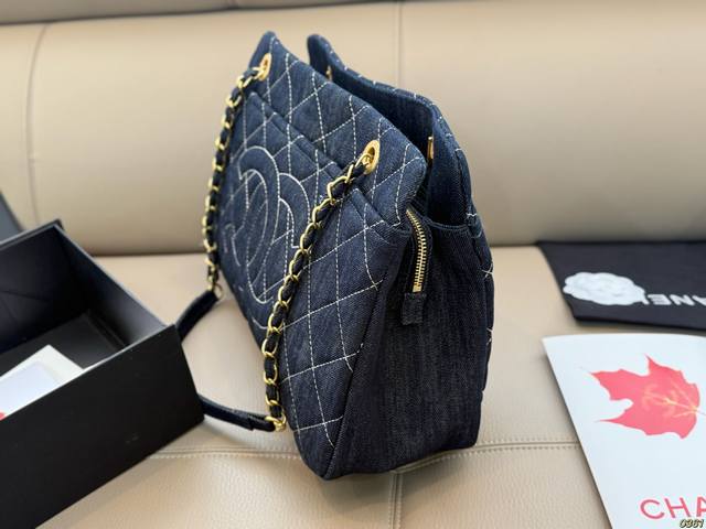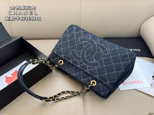 Gold-tone hardware Chanel denim tote bag, high-value design, a must-have for girls, perfect for everyday outings and travel. Size 37 x 24.