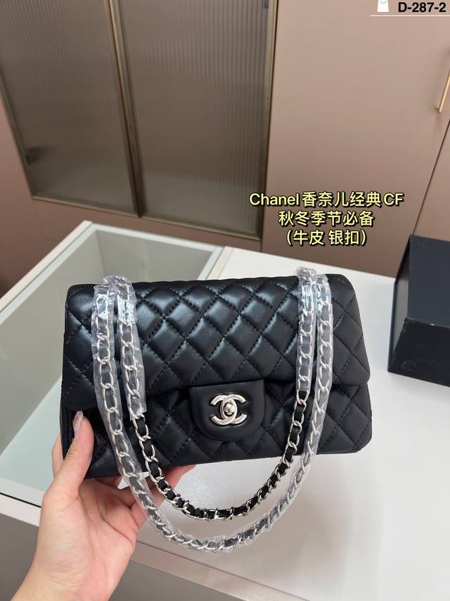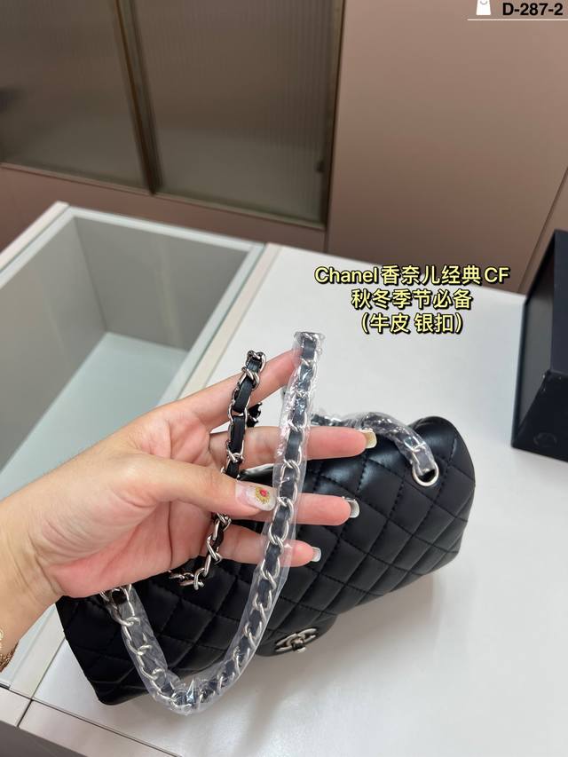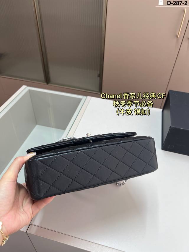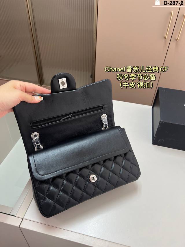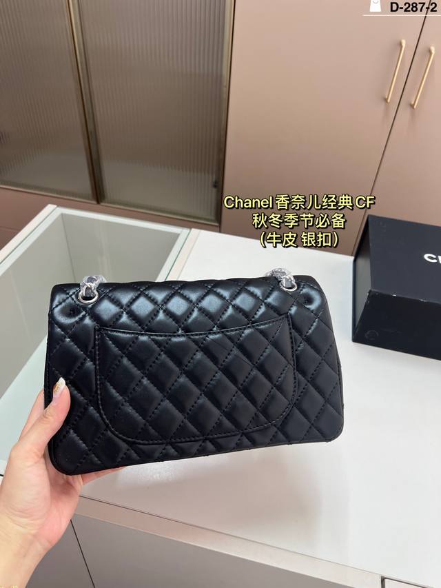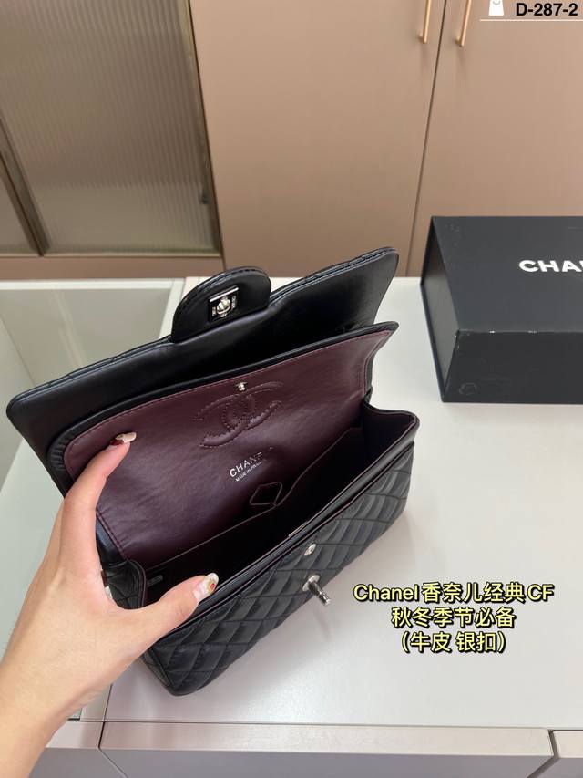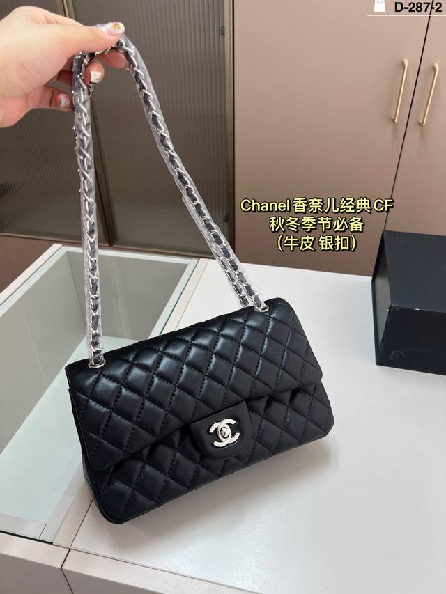 Leather Chanel CF silver hardware. Elegance and style are its defining characteristics. The capacity is more than enough; perfect for shopping trips and dates. D-287-2 Size 26