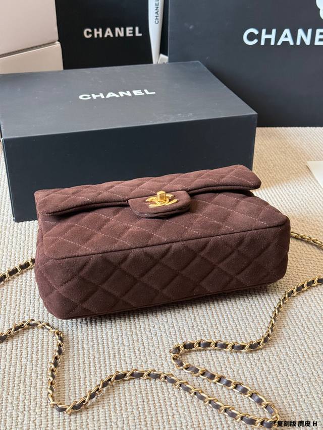 Replica suede Chanel CF chain bag. This Chanel CF series burgundy chain bag exudes elegant and retro charm. Classic quilted stitching adds a touch of luxury and durability. The chain shoulder strap allows for hand-carrying, shoulder-carrying, or crossbody wear, making it versatile and suitable for both work and dates! Measuring approximately 25 x 14 cm, it offers a moderate capacity, easily accommodating everyday essentials. The burgundy color is understated yet luxurious, perfect for autumn and winter, and is one of the classic CF series colors