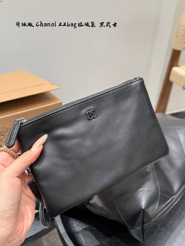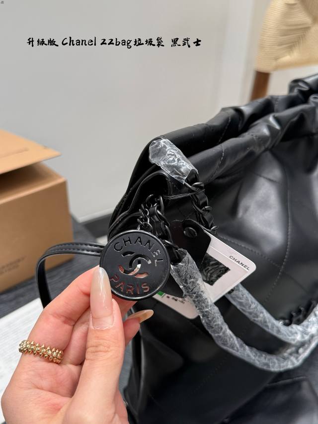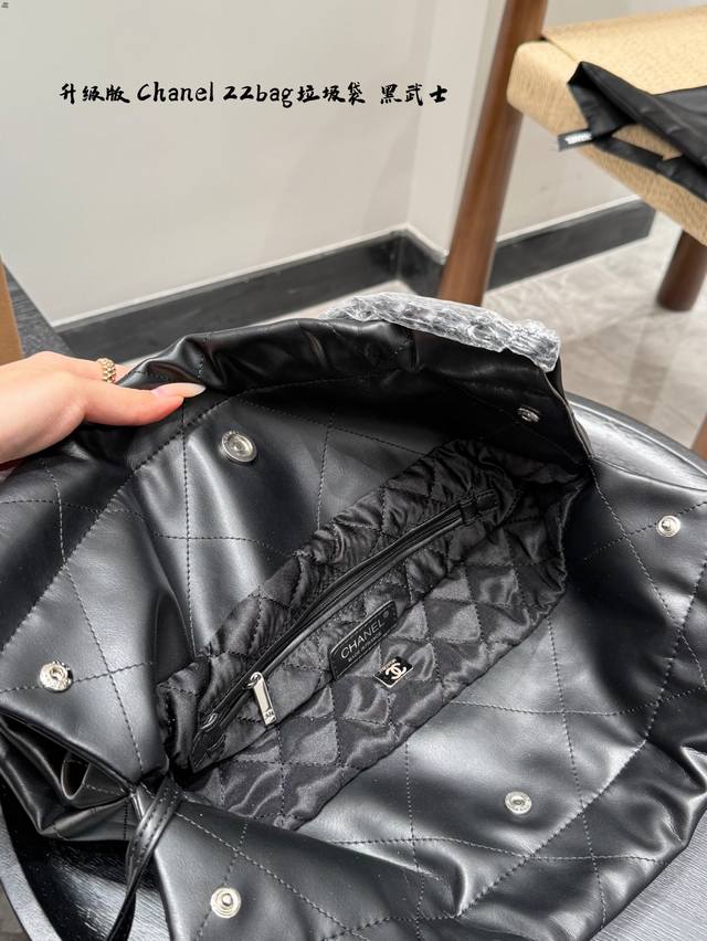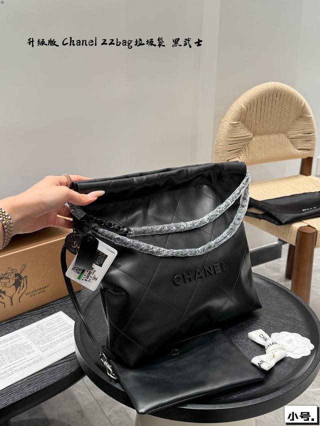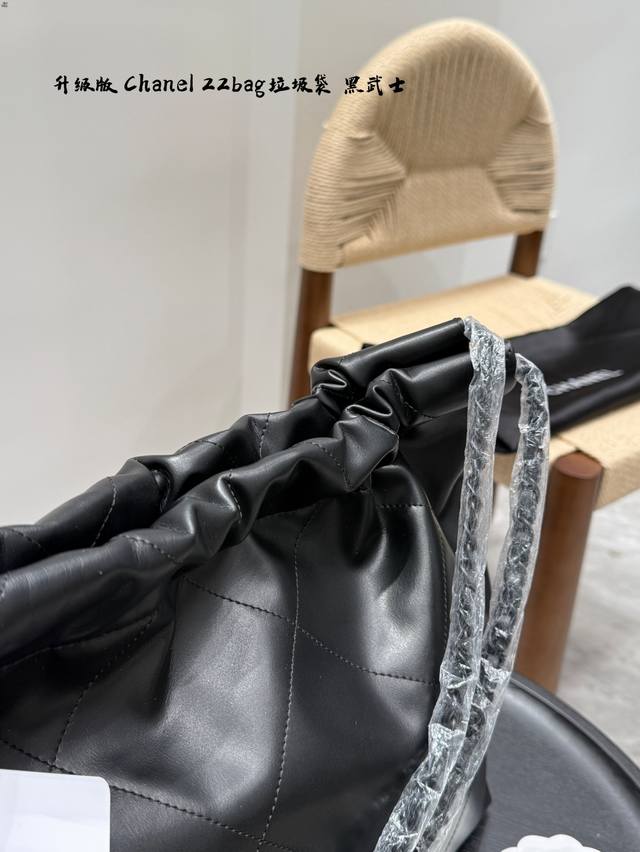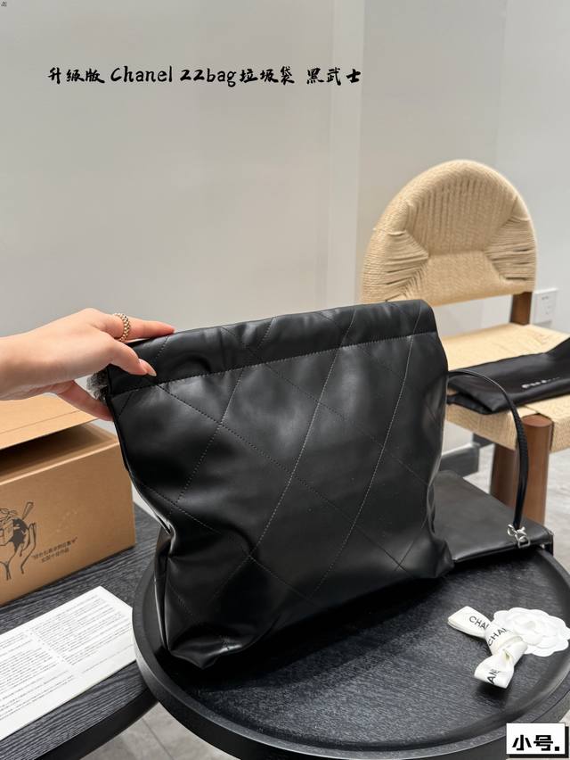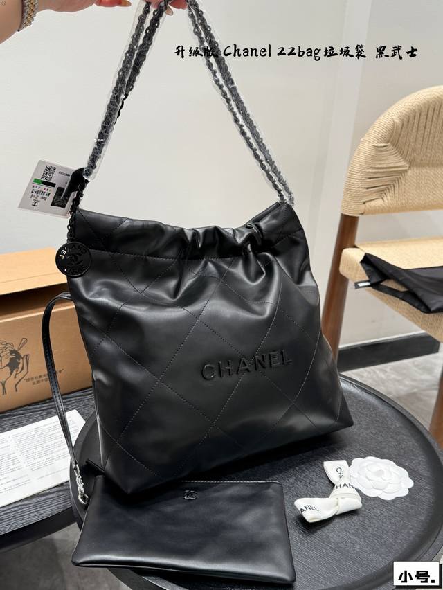 Same price for all sizes, gift box packaging. Size: 32.35 (small), 35.39 (large). Chanel 24C 22Bag trash bags. Chanel Black Knight style. Chain design adds a touch of casualness. Simple appearance with a focus on practicality, visibly spacious. A sophisticated and cool feel, both cool and sweet. Excellent capacity. Retains a relaxed feel while adding a touch of chic and neatness. I'm absolutely smitten with the 22Bag!