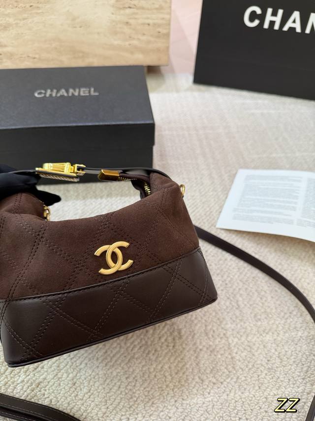 Suede Chanel Lunch Bag, Vintage Series, can be carried by hand or crossbody, comes with gift box, size 19.16 cm.