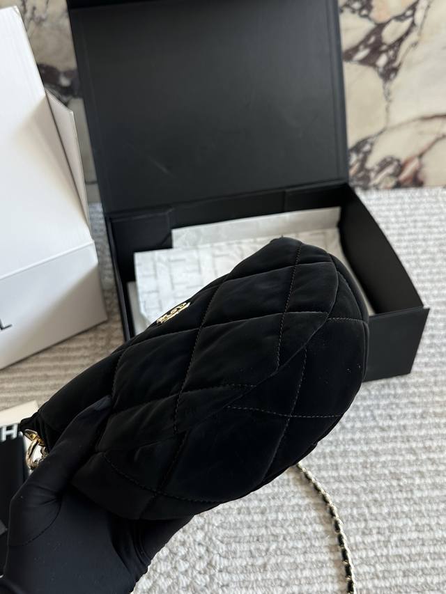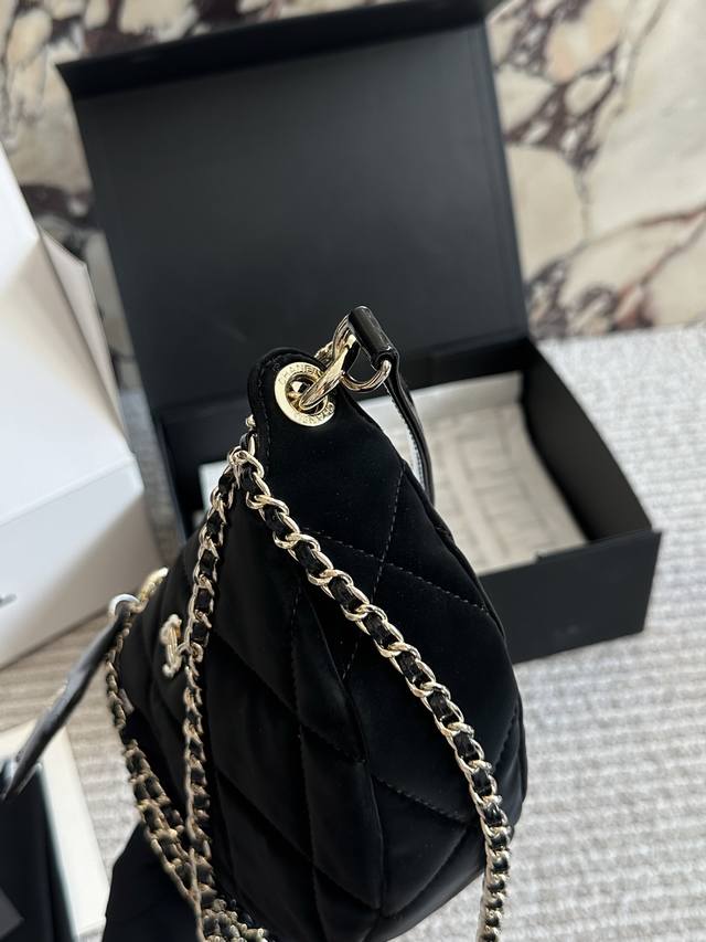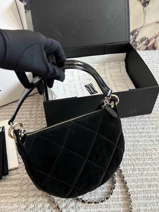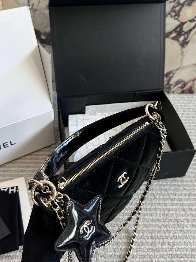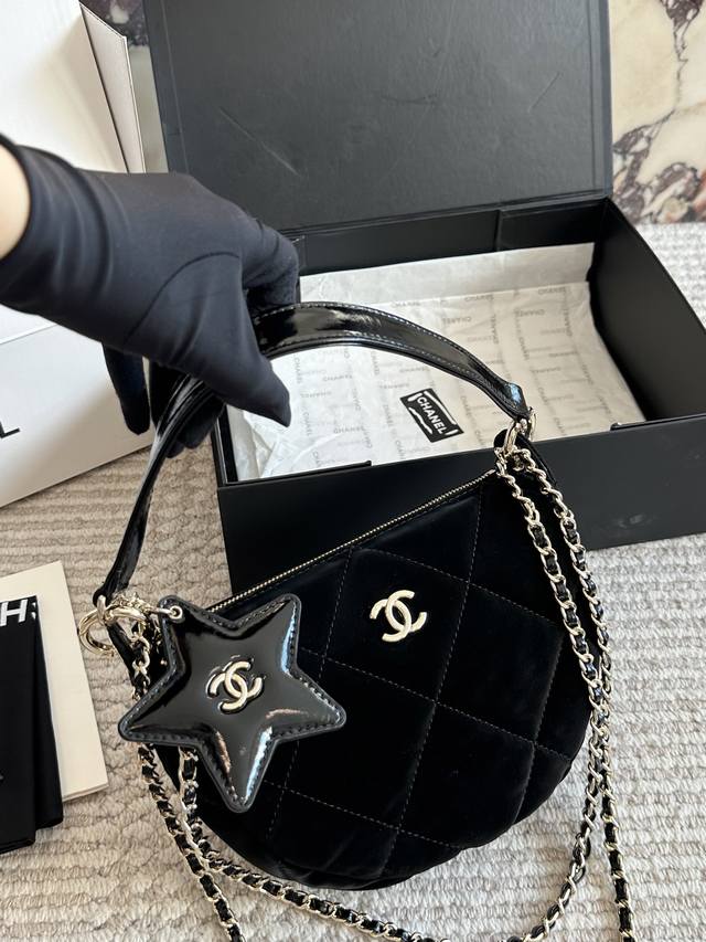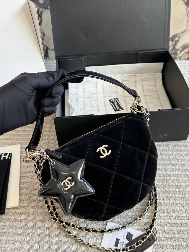 Chanel 25N Coco Neige Velvet Five-Pointed Star Crescent Bag DDD The semi-circular crescent bag is small and exquisite! DDD The five-pointed star leather charm is dotted with two dots, and turns out to be a small mirror [Wow R] DDD The velvet nylon material has a great texture! It's very lightweight~ and feels silky and soft to the touch~ DDD The leather-threaded metal chain can be adjusted for single shoulder or crossbody wear, easily switching between the two styles DDD The short shoulder strap can also be carried by hand, super elegant [Cute R] DDD It goes so well with all kinds of autumn and winter outfits, giving off a wintery vibe DDD 21 15cm with box DDD