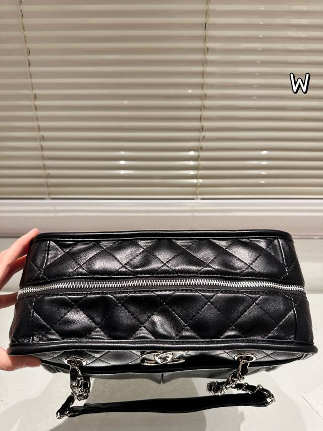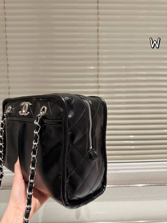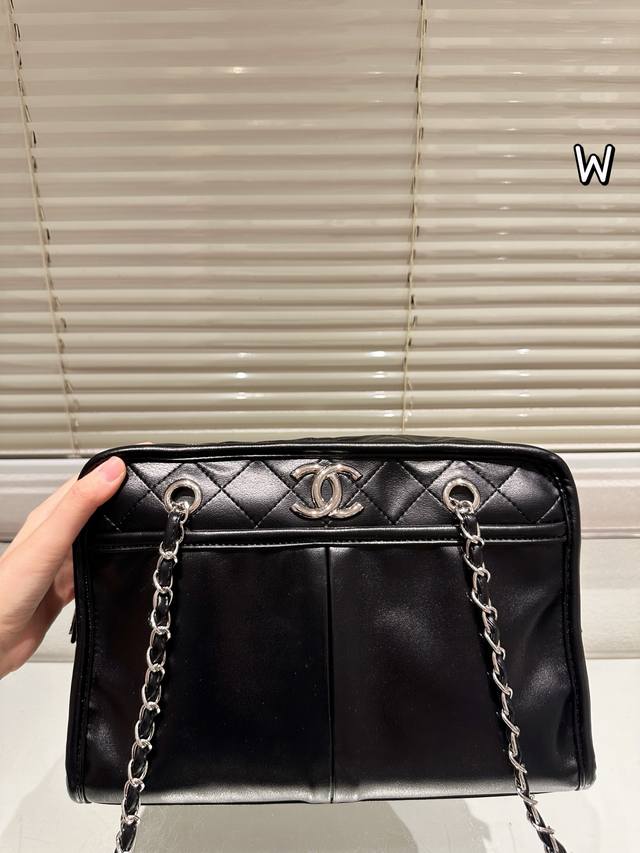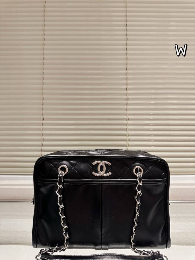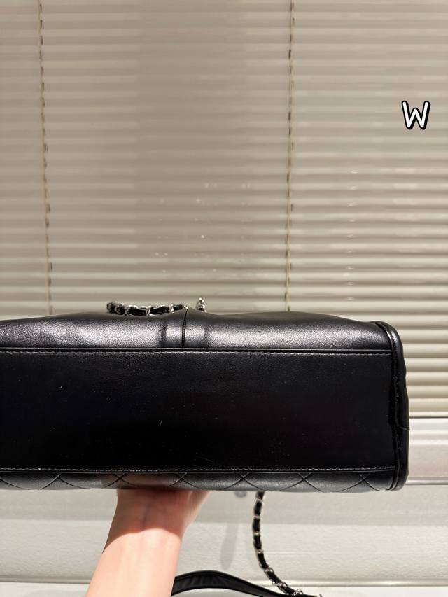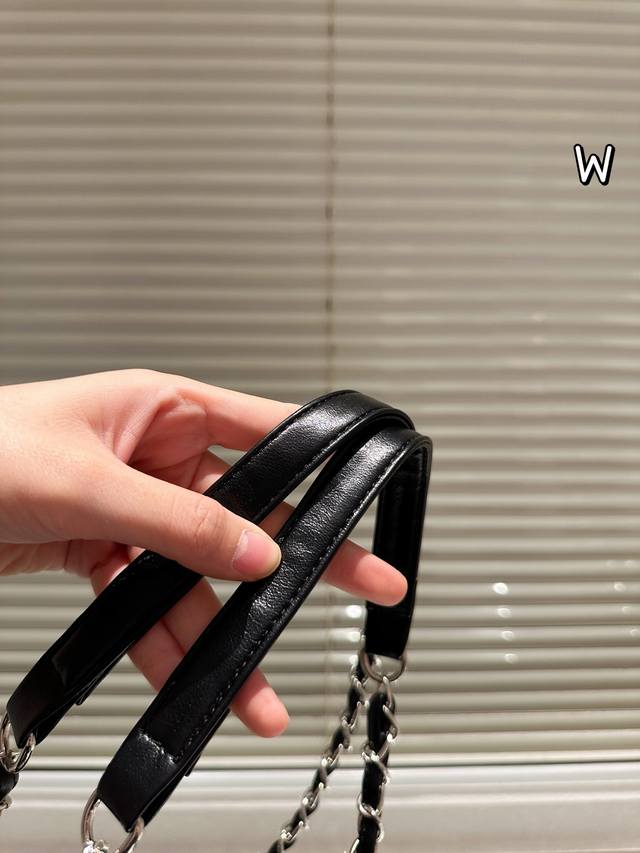Chanel Black and Silver Double Pocket Tote Bag DDD This Chanel black and silver double pocket tote bag features pebbled calfskin leather and a classic black and silver color scheme, exuding understated elegance. The quilted pattern and double pocket design are both practical and stylish, offering ample capacity for commuting or short trips. The metal chain and leather-threaded chain allow for versatile shoulder or crossbody wear, lightweight and comfortable, with a durable and resilient body that develops a vintage feel over time. Effortlessly adaptable to everyday commutes and casual outings, this versatile bag combines functionality and style! DDD Size: 30 x 20 cm DDD