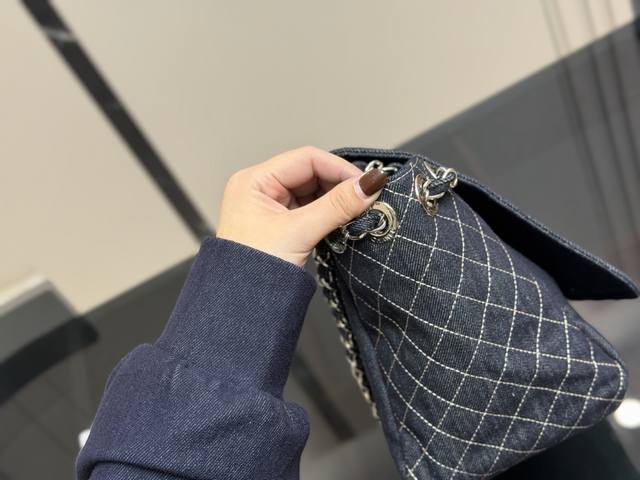 Chanel is awesome, it has to be denim! Denim is such a casual and practical material, isn't it? This Chanel denim messenger bag is so cute! Size: 30.24cm