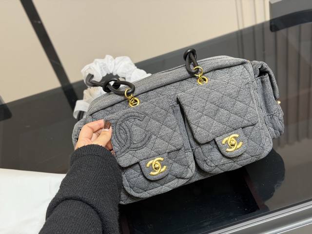 With Airplane Box Folding Box Chanel Denim Cf Chain Bag Simple And Versatile Wit