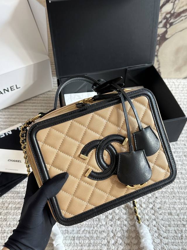 Chanel's new box-shaped cosmetic bag is made of caviar fabric, showcasing your most beautiful self at all times. It can be worn on the shoulder or crossbody, exuding feminine elegance. A super versatile casual chain bag, measuring 21cm x 17cm. Full packaging included.