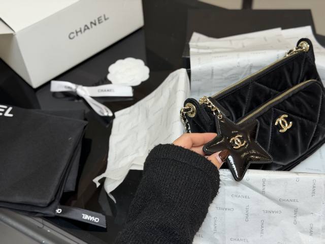 Comes with a folding box/airplane box DDD Chanel New 25N Ski Velvet Five-Pointed Star Camera Bag DDD Chanel Ski Series 25K Bow Bag DDD Last week, the sales assistant notified me that the bow bag had arrived, so I rushed to the counter immediately DDD I also looked at the ski series items DDD The bag in picture one is super cute and the price is also cute DDD I also tried on the ski series bags DDD Size: 22.15Cm DDD