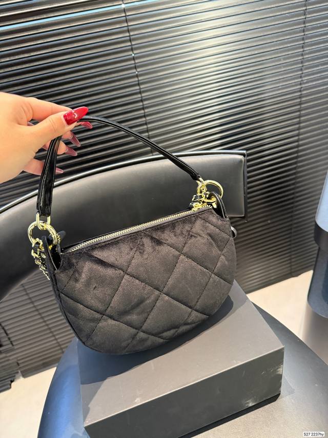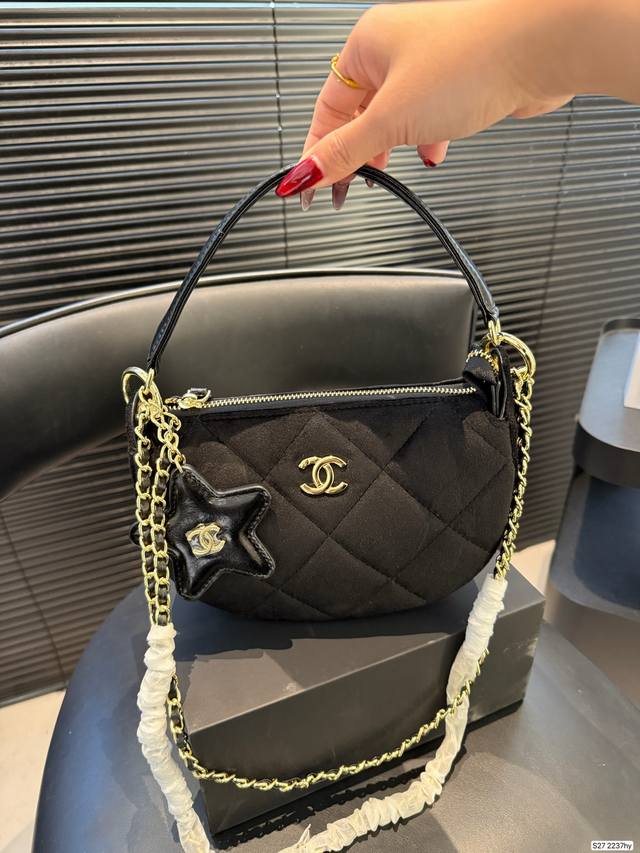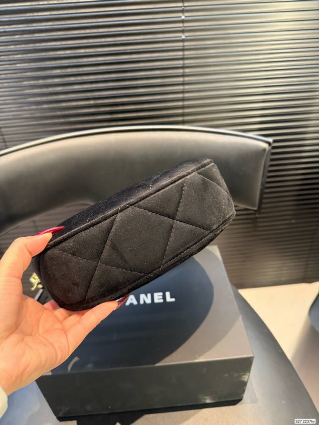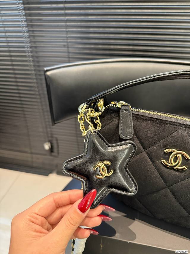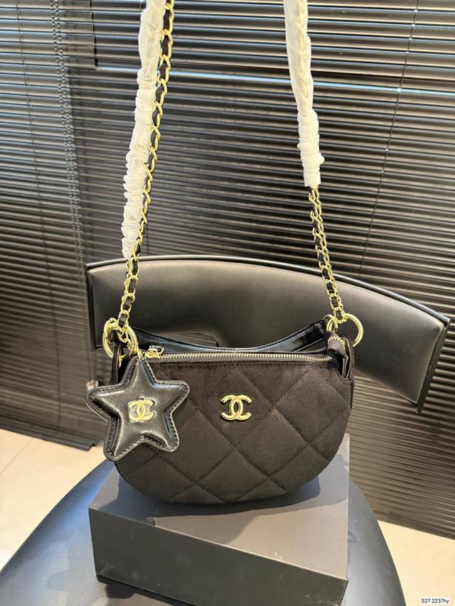 Comes with box Chanel 25N Coco Neige Velvet Five-Pointed Star Crescent Bag DDD The semi-circular crescent bag is small and exquisite! DDD The five-pointed star leather charm is dotted with two dots, and when turned out, it's a small mirror [Wow R] DDD The velvet nylon material has a great texture! It's very lightweight~ and feels silky and soft to the touch~ DDD The leather-threaded metal chain can be adjusted for single shoulder or crossbody wear, easily switching between the two styles DDD The short shoulder strap can also be carried by hand, super elegant [Cute R] DDD It goes so well with all kinds of autumn and winter outfits, giving off a wintery vibe DDD Size 21 15 Item No. 2237 DDD