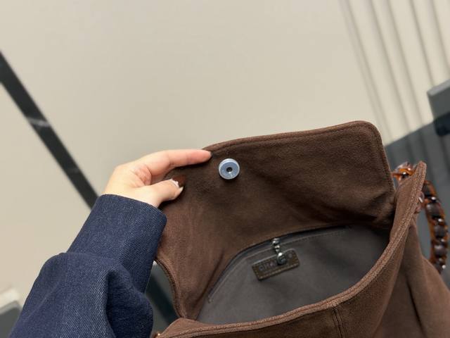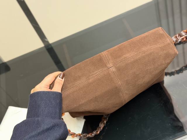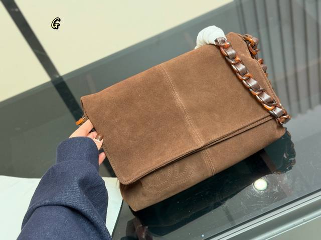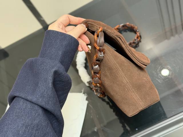 No Box DDD Chanel Vintage Suede Tortoiseshell Chain Bag DDD Brown suede + tortoiseshell chain, exuding vintage elegance! The bag is soft and lightweight, with ample interior space, suitable for both commuting and everyday use. The tortoiseshell chain is highly recognizable, instantly adding a touch of sophistication to autumn and winter outfits, especially when paired with trench coats or overcoats. All cards and tags are included, in excellent condition, great for collectors or everyday use DDD Size: 30.22cm DDD