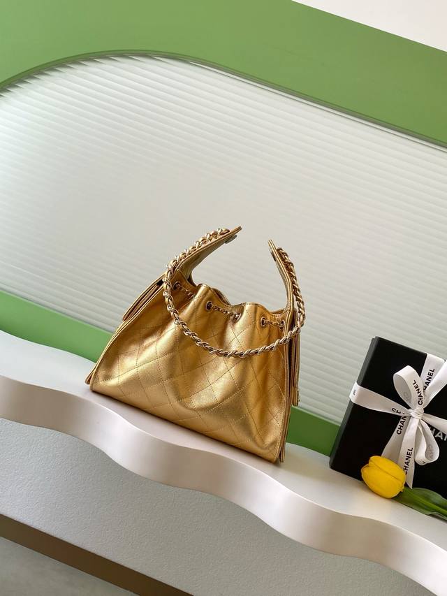25 Bag, Ball Texture Leather, Chanel Hobo Shoulder Bag, Hippie Style, Small Size, Vintage Gold Coin Button Drawstring Bucket Bag + Quilted Pattern, Classic Chain Design, Exuding Sophistication! A must-have for everyday outings, exquisite appearance, delicate texture, easily adaptable to both casual and formal occasions. Style Number As5293, Size 30-26-14.