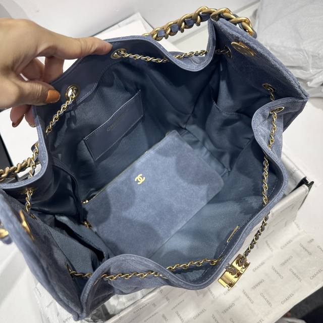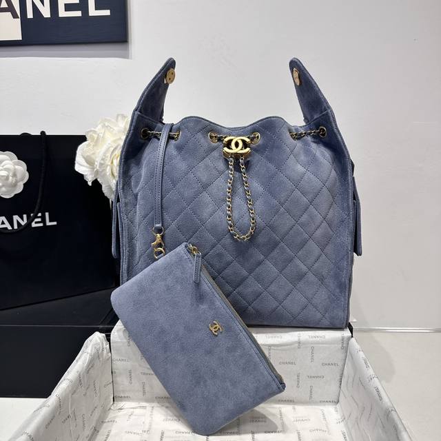 25C Gray-blue deerskin hip-hop bag DDD Chanel Hobo shoulder bag, large size DDD Retro gold coin button drawstring bucket bag + quilted pattern DDD Classic chain design, full of high-end feel! A must-have for daily outings, exquisite appearance, delicate texture, easily matching both casual and formal occasions DDD Style number As5311 DDD Size 40-30-15 DDD