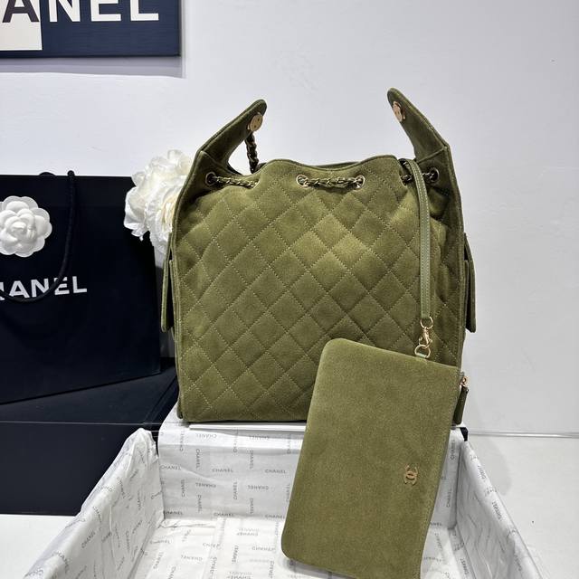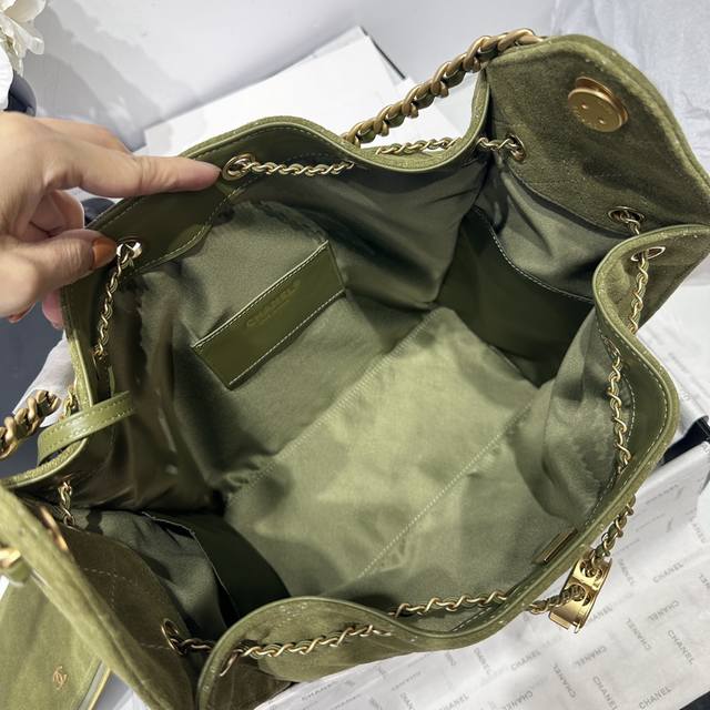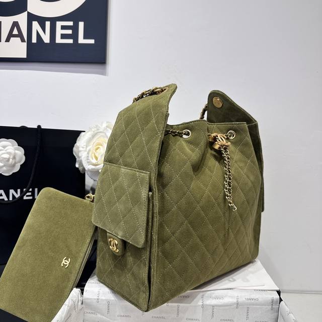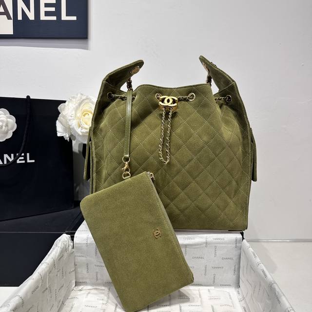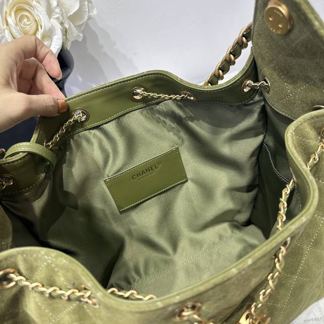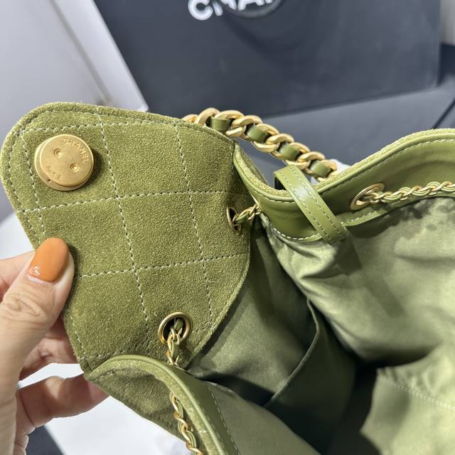 25C Green Deer Leather Hip Hop Bag DDD Chanel Hobo Shoulder Bag, Large Size DDD Retro Gold Coin Button Drawstring Bucket Bag + Quilted Pattern DDD Classic chain design, exuding a high-end feel! A must-have for everyday outings, exquisite appearance, delicate texture, easily adaptable to both casual and formal occasions DDD Style Number As5311 DDD Size 40-30-15 DDD