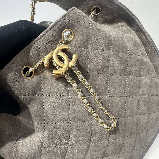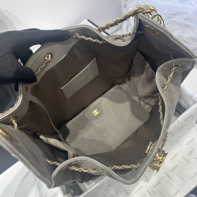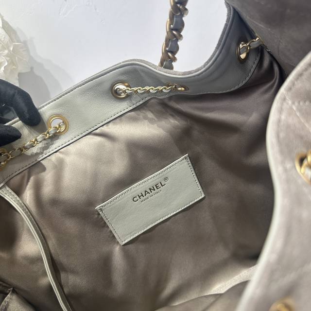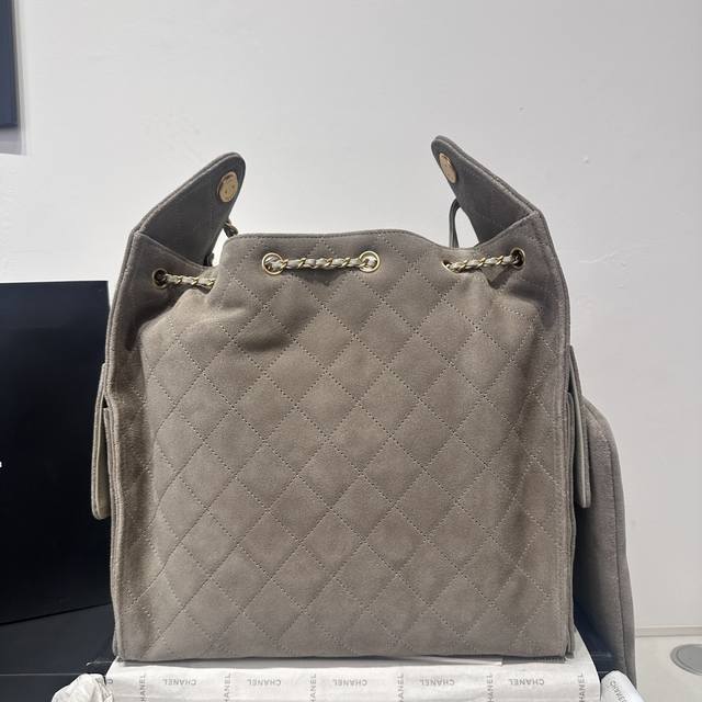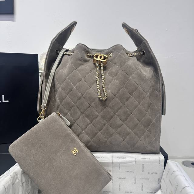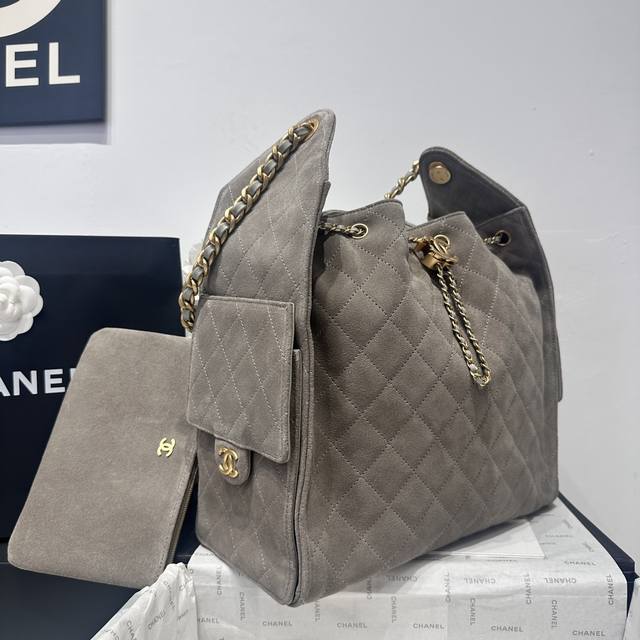 25C Grey Deer Leather Hip Hop Bag DDD Chanel Hobo Shoulder Bag, Large Size DDD Retro Gold Coin Button Drawstring Bucket Bag + Quilted Pattern DDD Classic chain design, exuding a high-end feel! A must-have for everyday outings, exquisite appearance, delicate texture, easily adaptable to both casual and formal occasions DDD Style Number As5311 DDD Size 40-30-15 DDD