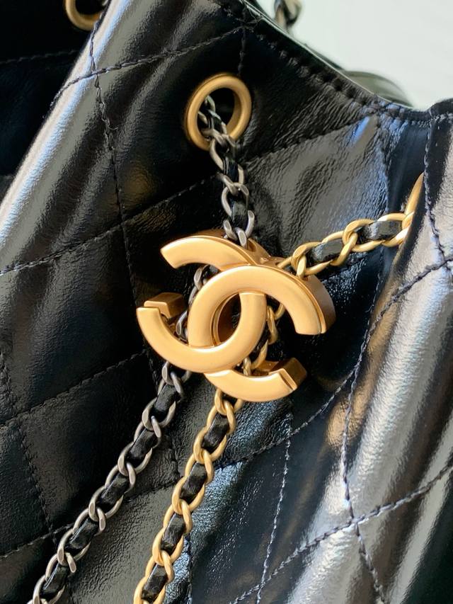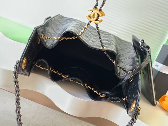 25C Leather Hip Hop Bag Ddd Chanel Hobo Shoulder Bag, Large Size Ddd Retro Gold Coin Button Drawstring Bucket Bag + Quilted Pattern + Retro Black and Gold Ddd Classic chain design, exuding a high-end feel! A must-have for everyday outings, exquisite appearance, delicate texture, easily adaptable to both casual and formal occasions Ddd Style Number As5311 Ddd Size 40-30-15 DDD Ddd