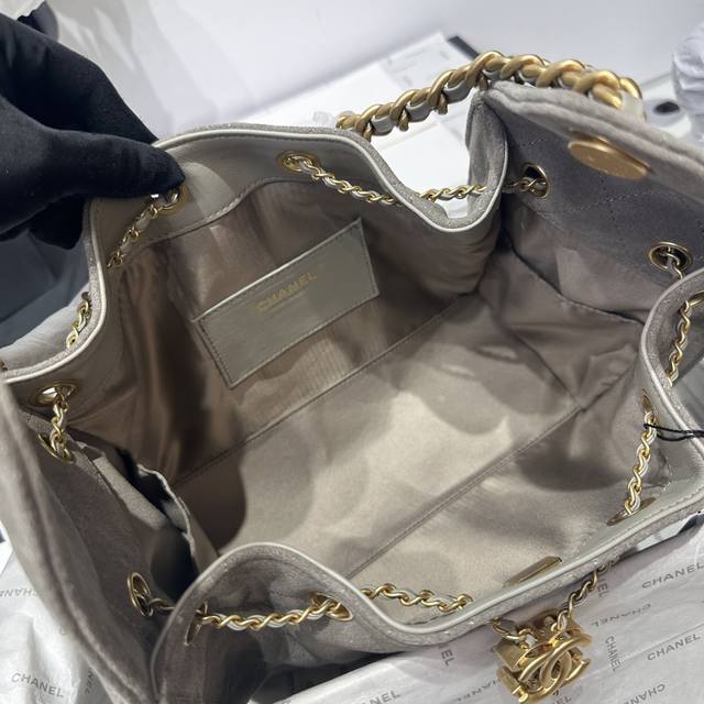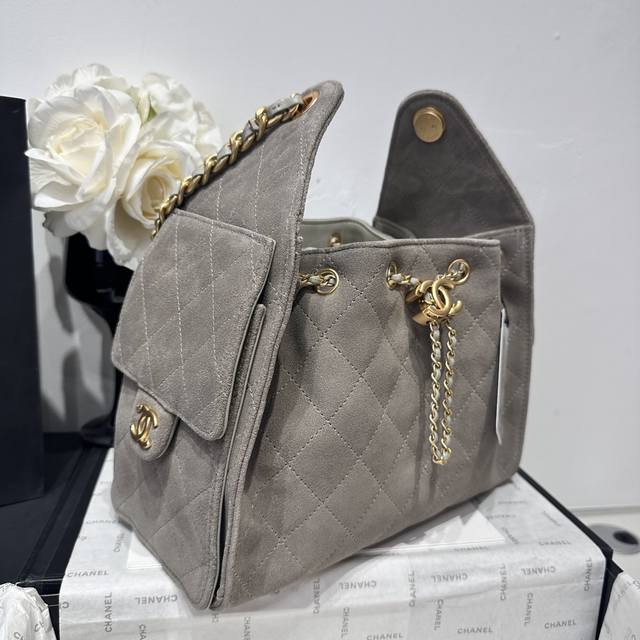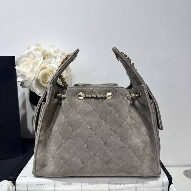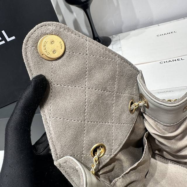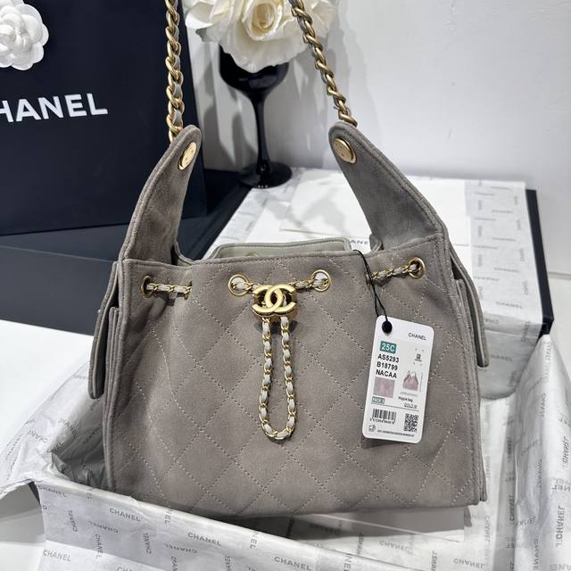 25C Light Grey Deer Leather Hip Hop Bag DDD Chanel Hobo Shoulder Bag, Small Size DDD Vintage Gold Coin Button Drawstring Bucket Bag + Quilted Pattern + Vintage Black and Gold DDD Classic chain design, exuding a high-end feel! A must-have for everyday outings, exquisite appearance, delicate texture, easily adaptable to both casual and formal occasions DDD Style No. As5293 DDD Size 30-26-14 DDD