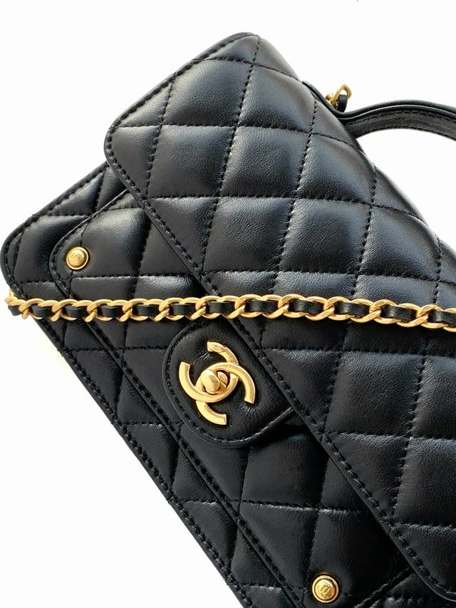 4674 Large Chanel 25B lambskin double C pocket handle bag. Very delicate and lightweight bag. Classic diamond pattern and metal hardware design are very beautiful. Dimensions: 12.3X19X5cm