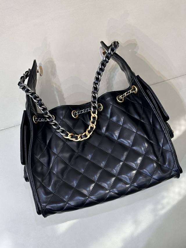 5293 Chanel's new product launches always bring unexpected surprises, and this year is no exception! The Chanel 25C early spring collection bags have reached new heights in terms of aesthetics. This multi-pocket hobo bag is the trendsetter of the season, and its marketing has been incredibly hot since its runway debut. The multi-pocket design perfectly captures a relaxed and effortless vibe, paired with the glossy retro hardware and double C logo, making it arguably the king of this season. Looking closely, it really does resemble Loewe's hammock bag; the bag has a strong street style feel and is quite spacious. The effect of wearing it and the overall outfit will instantly make you want to buy it. The side pocket decorations have a strong urban workwear feel, adding a lot of fashion elements to the overall look. We've released many items from this brand before, so there's not much to say about the products from the same channels. Just buy it without hesitation. It's still from our Yyds series, using exclusive raw materials and original hardware