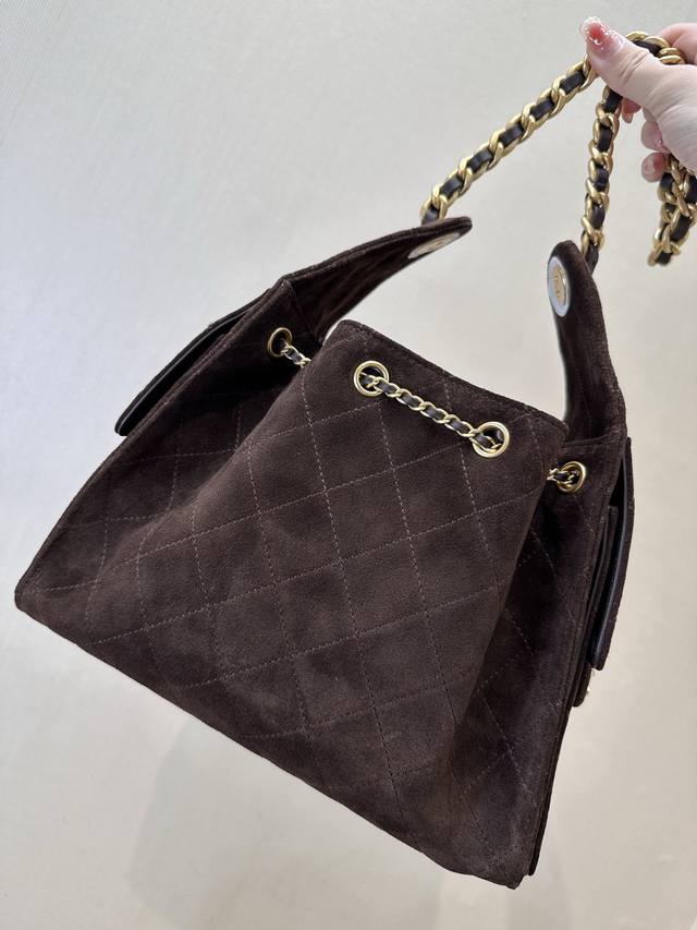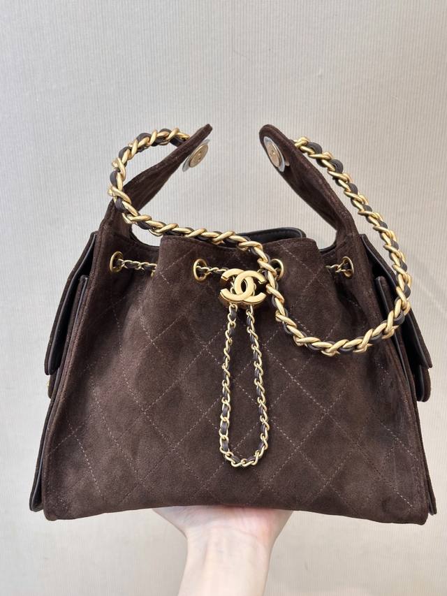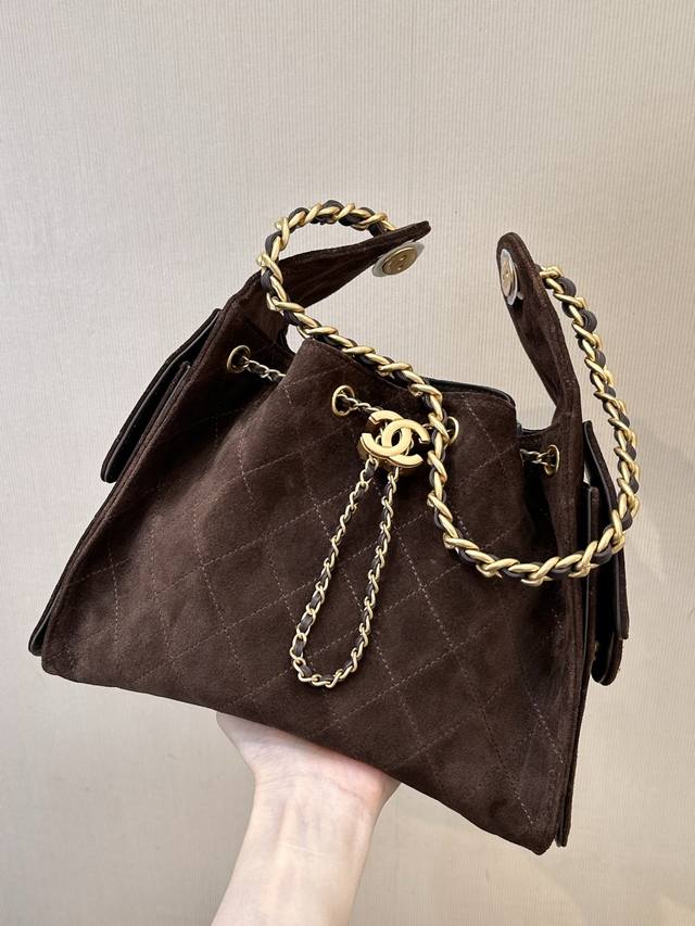 5293 Sisters! Chanel has unleashed another amazing new collection! The 25C early spring collection bags are absolutely stunning! Look at this multi-pocket Hobo bag! It's definitely the hottest item this season, it became an instant hit as soon as it appeared on the runway. The brown suede with the glossy double C logo hardware is a guaranteed must-have item of the year! Honestly, at first glance I thought it was a sister bag to the Loewe hammock bag! The street-style silhouette and massive capacity will instantly transform you into a fashion blogger! The side cargo pockets give it a chic urban vibe, guaranteeing you'll turn heads wherever you go!