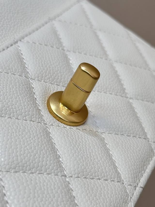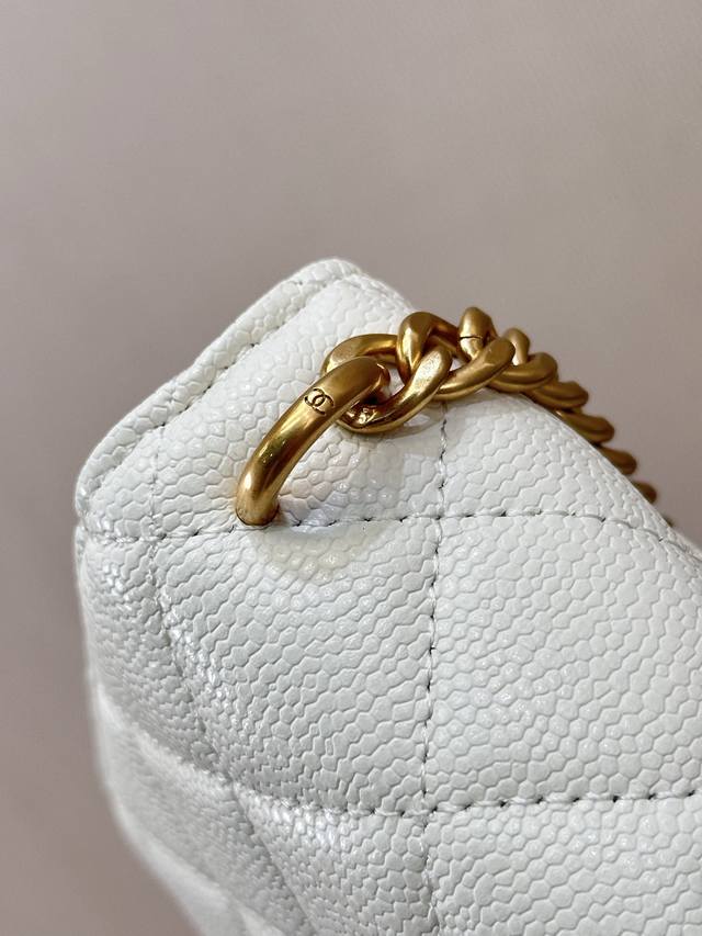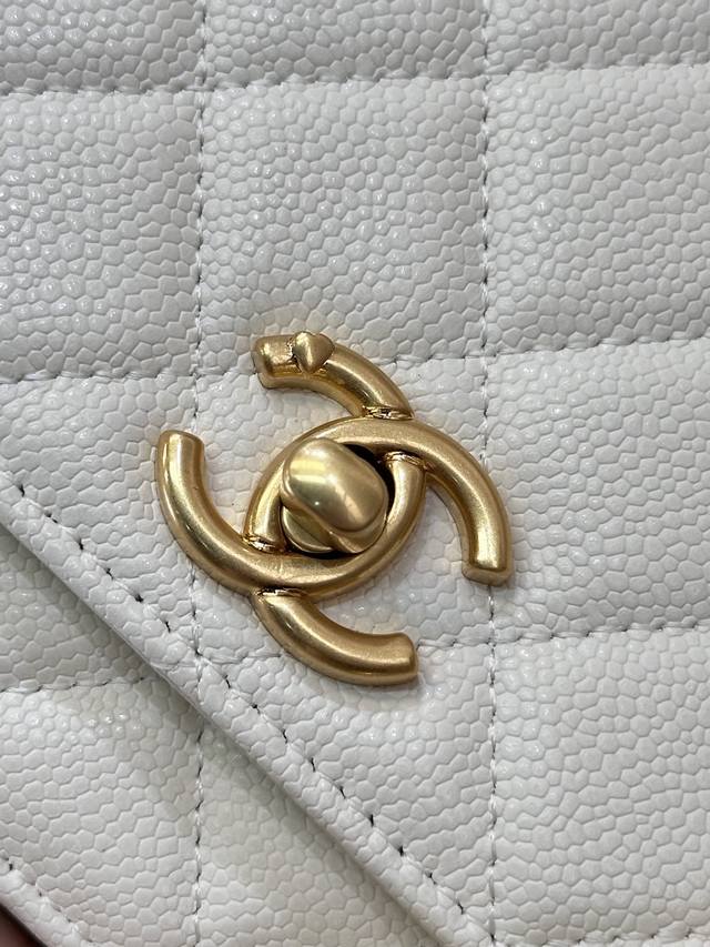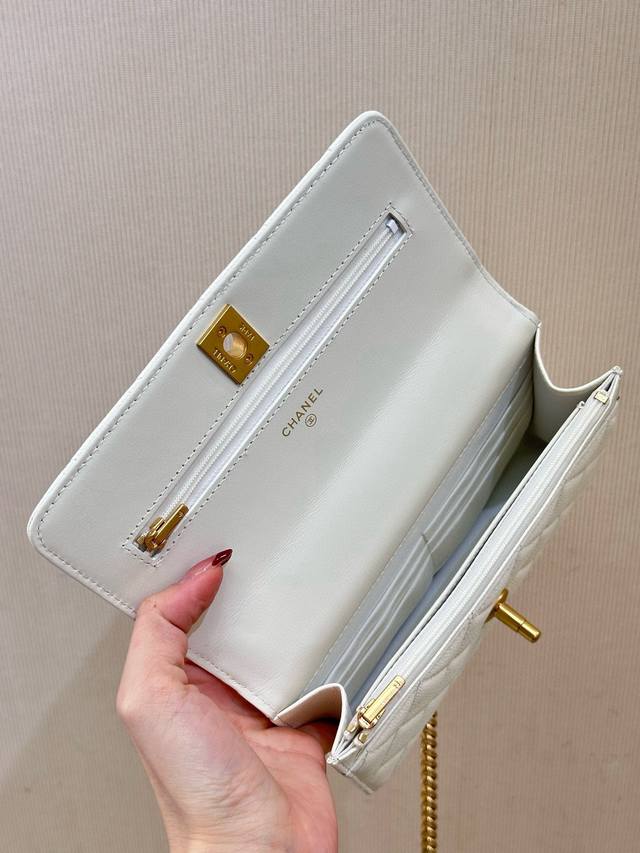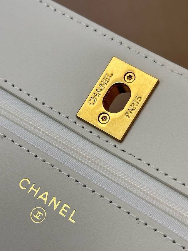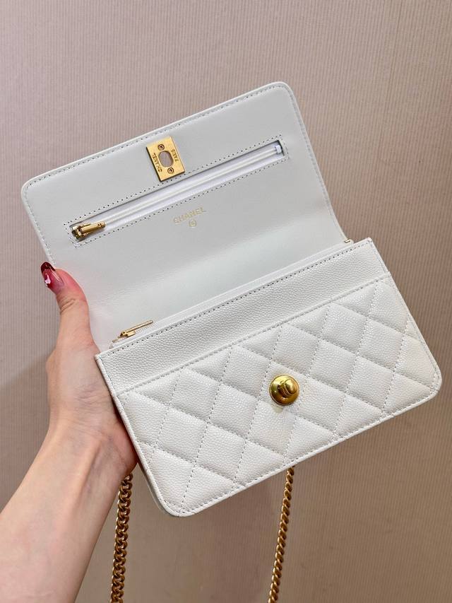 Although many brands have launched WOC (Wallet on Chain) bags, Chanel's WOC is the most desirable. I waited three months to receive this 24S series WOC "Fortune Bag"! The gold heart charm is the highlight of this bag; it's so exquisite and an attractive embellishment, paying homage to the classic design. The shoulder strap is a vintage gold chain with a retractable design. The interior is surprisingly compact; it can hold a compact powder, tissues, lipstick, ID card, vehicle registration, car keys... even an iPhone Pro Max fits easily. Model: 3201 Size: 19-12-4cm