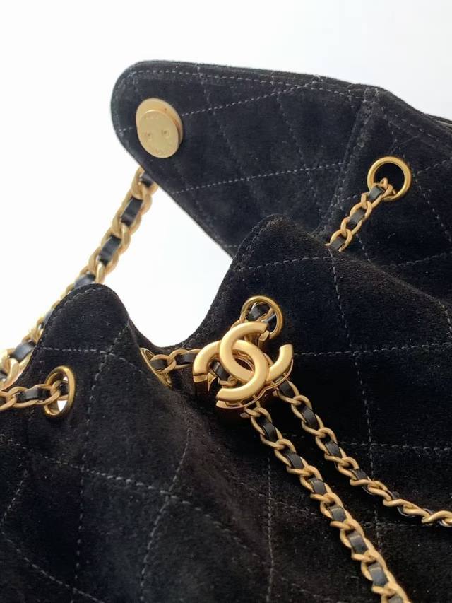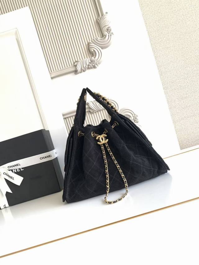 As5293 Chanel 25C: Another bag named after a year. This Chanel Hobo bag is a small, retro-style shoulder bag with a gold coin button drawstring. It features a quilted pattern and a classic black and gold chain design, exuding sophistication! A must-have for everyday outings, its exquisite appearance and delicate texture make it suitable for both casual and formal occasions. Dimensions: 30 x 26 x 14 cm.
