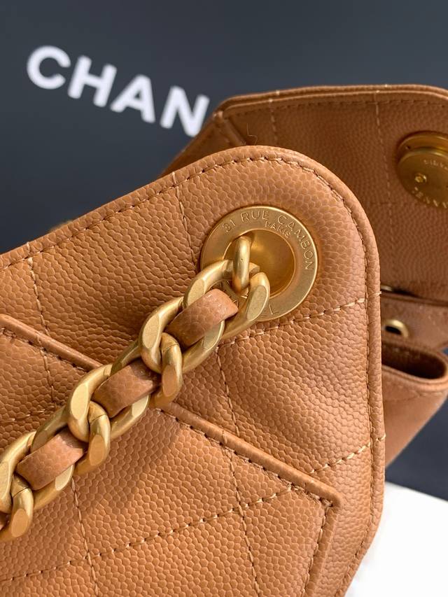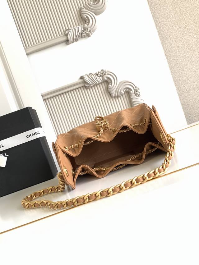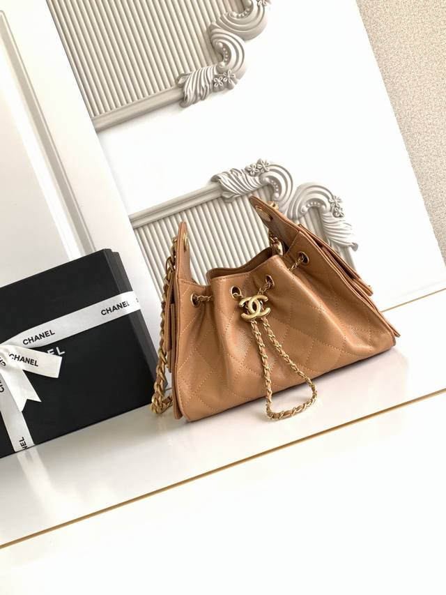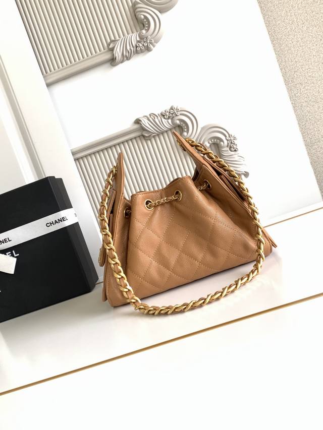 As5631 Chanel 25C Hobo bag, another style named after a year. This small, vintage-style bucket bag features a quilted pattern and a classic black and gold chain design, exuding sophistication. A must-have for everyday wear, its exquisite appearance and delicate texture make it suitable for both casual and formal occasions. Dimensions: 20 x 22 x 12.5 cm.