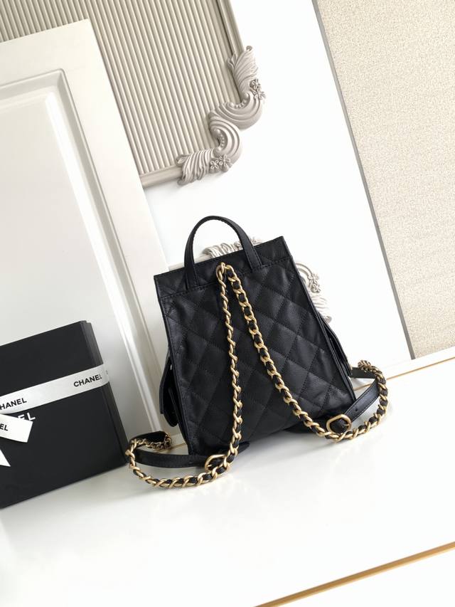 As5760 Chanel's backpacks are incredibly popular, and now they're back with a new backpack series! They've retained the original shape, but now offer a dual-carry option! The sides feature dual adjustable pockets, while the sleek, three-dimensional shape continues the collection's practicality, offering ample storage space. The opening features a magnetic clasp! The safety features are incredibly secure, and seeing the actual product is truly captivating! Dimensions: 31x30x17cm