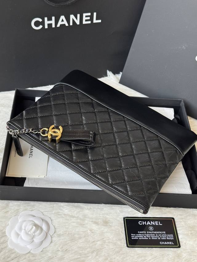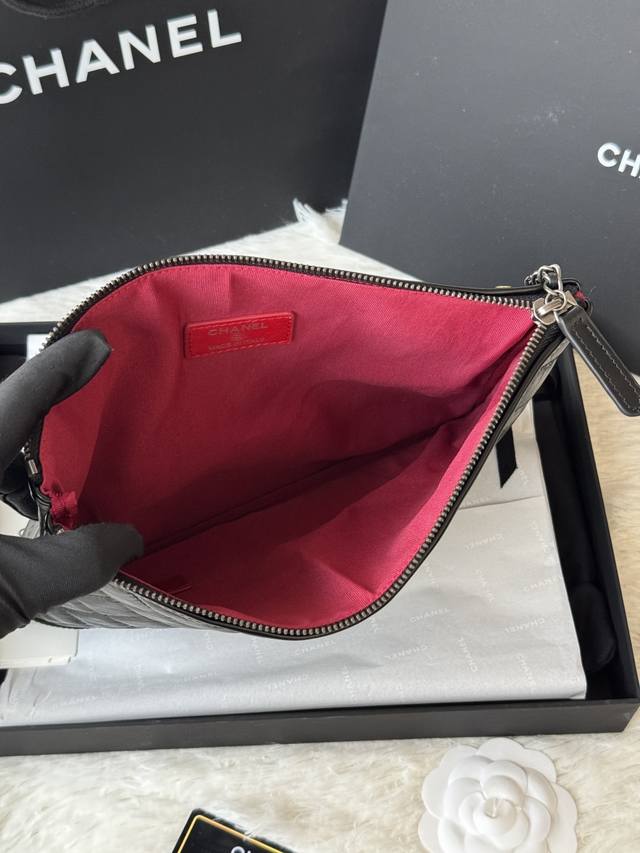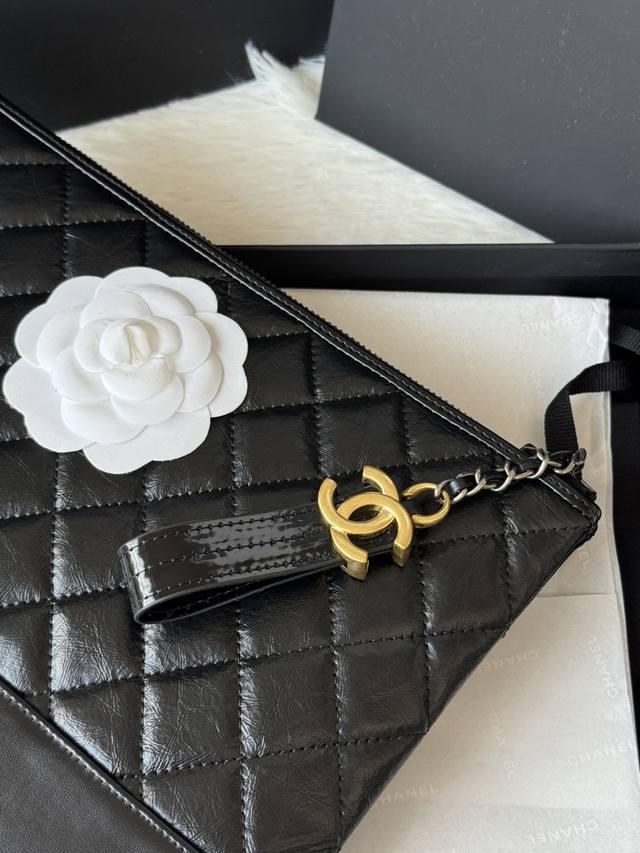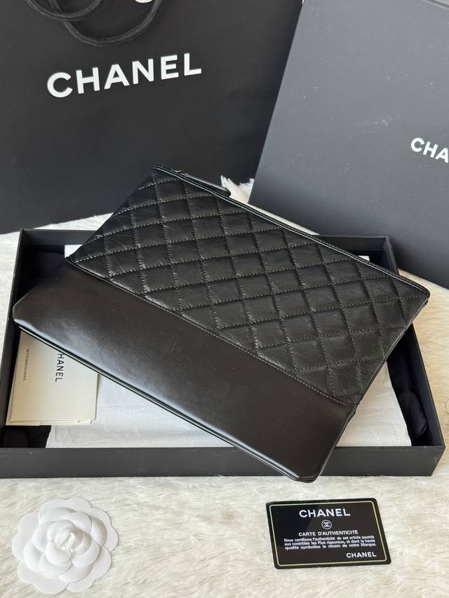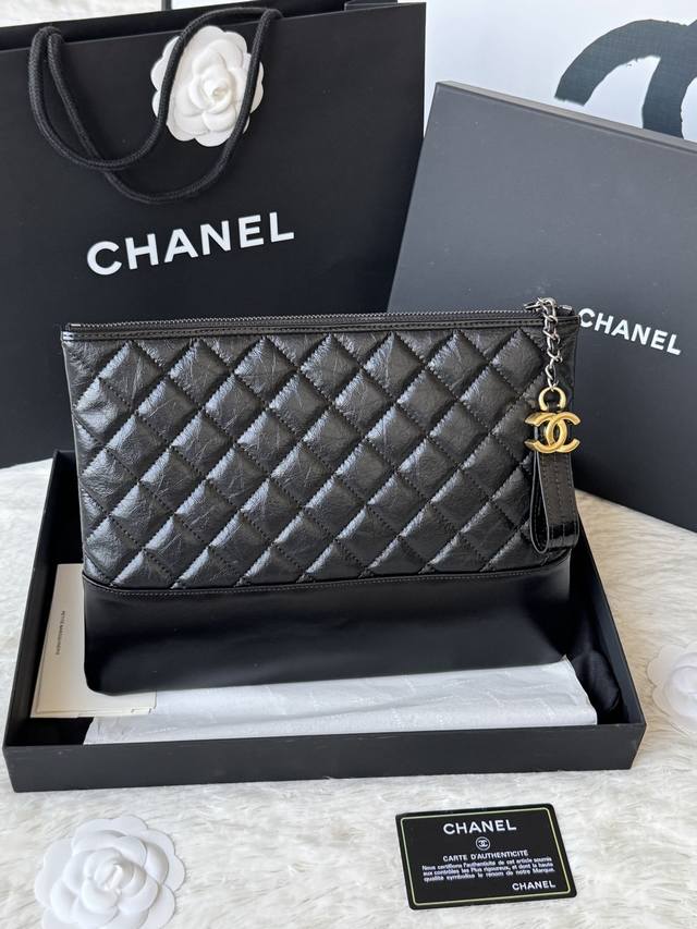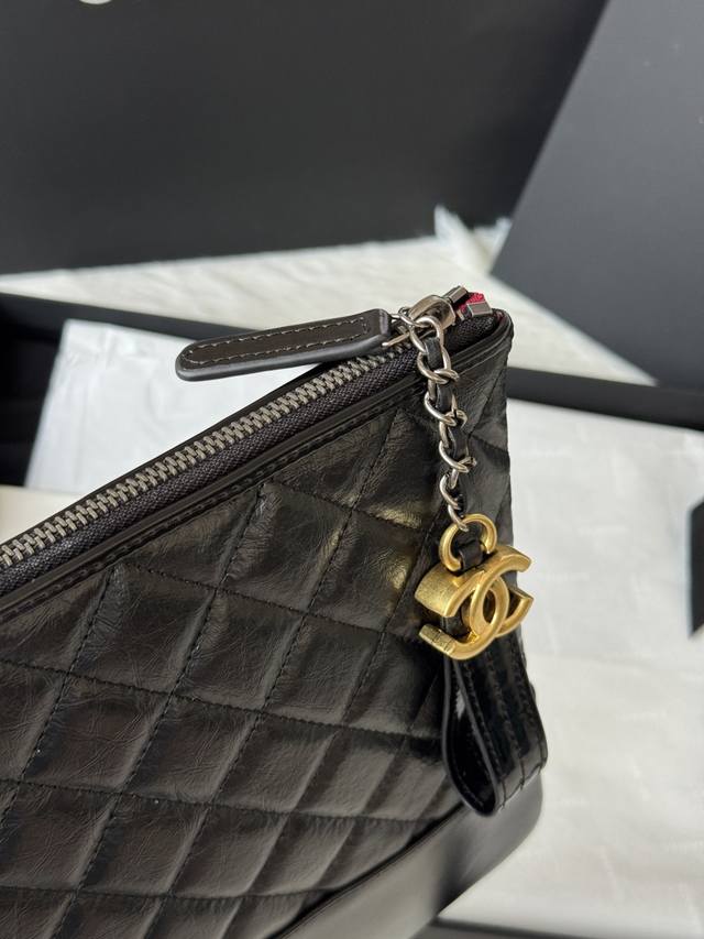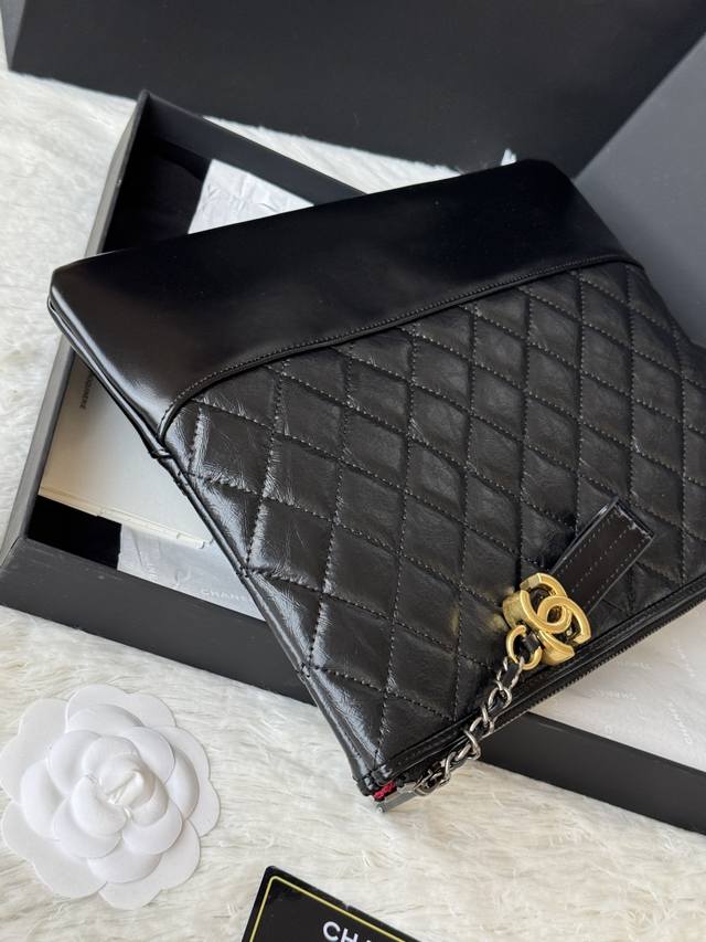 Authentic Chanel Gabrielle Hobo clutch. Simple and elegant! Feels great! Original quality, Hobo carry-on bag. Made of elephant-grain cowhide with waxed leather, silver and antique gold metal. Item No.: 9835. Dimensions: 28 x 22 x 1 cm.