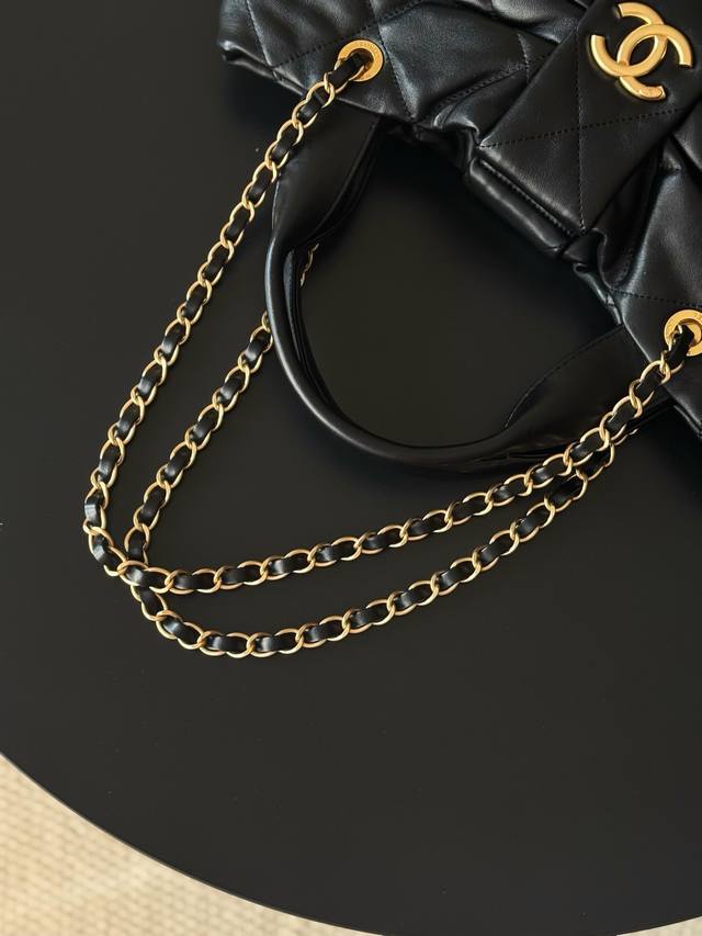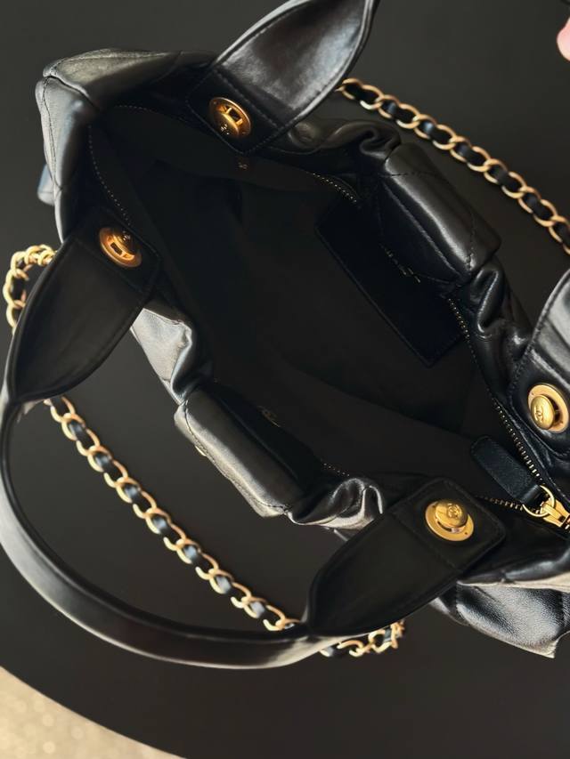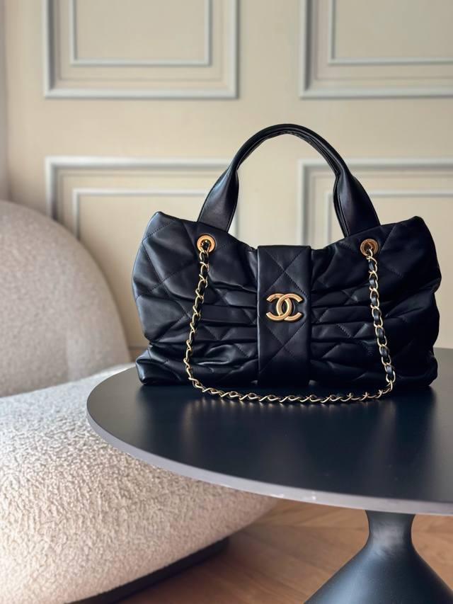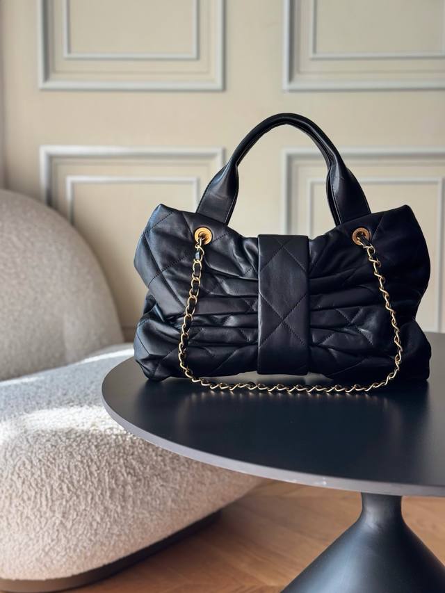 Brand New Arrival Ddd Lambskin Bow Bag, Black, Large Size Ddd Purchased from Chanel 25K. This season's hottest bow bag, loved by many young women. A blend of classic quilted pattern, casual yet sweet, making the whole bag incredibly charming. Breaking away from the conventional bag shape, the bow becomes the main element. The double C clasp in the center is eye-catching. The lambskin creates a fluffy and soft feel; the leather is exceptionally soft, comfortable, and delicate. The handle allows for easy carrying, and the metal chain hangs freely. It instantly switches between sweet and cool styles, suitable for both formal suits and playful, cute everyday wear. A truly unique style choice Ddd Hardware: Thick vintage gold plating Ddd Leather: Lambskin Ddd Size: ** Ddd Model: As585 1 DDD