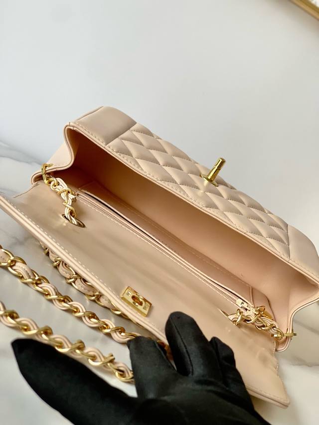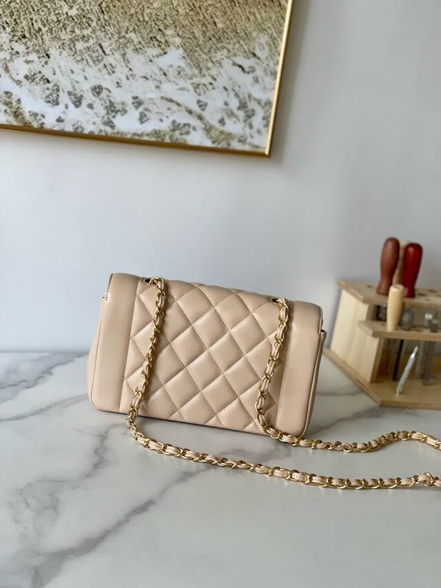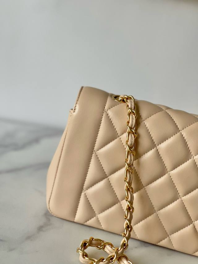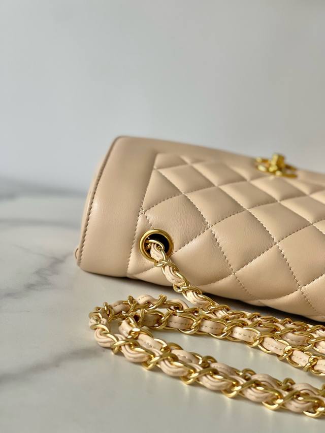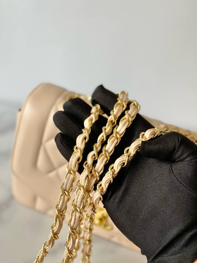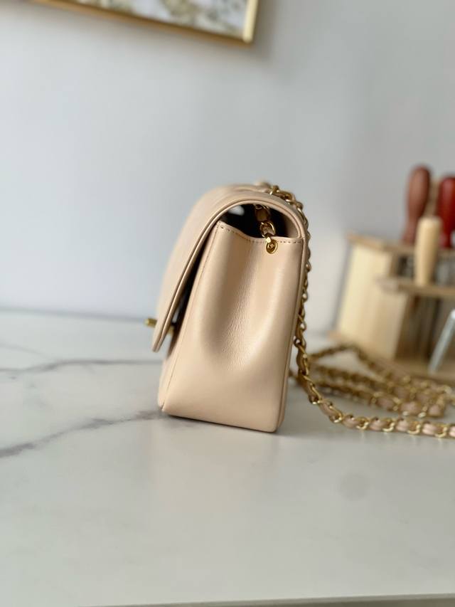 Chane Vintage CF Chain Bag in Apricot Lambskin DDD The soft and supple cowhide paired with gold hardware is absolutely exquisite, unique, and distinctive! It feels like carrying a vintage bag with a story, very stylish DDD The leather chain can be easily switched between hand-carry, crossbody, and shoulder bag DDD Dimensions 22.5 x 14 x 7 cm DDD Item Number A2221 DDD