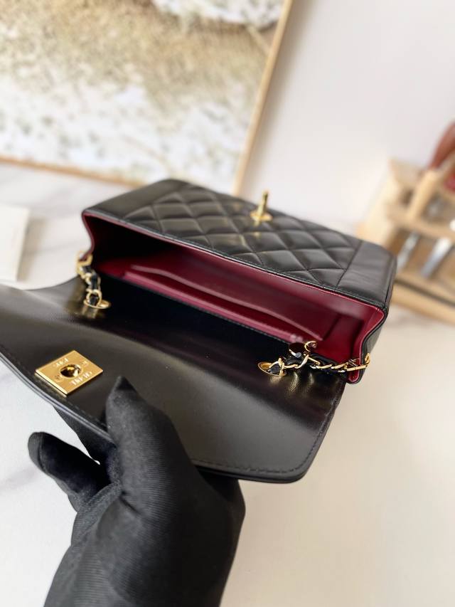 Chane Vintage CF Chain Bag in Black Lambskin DDD The soft, supple cowhide paired with gold hardware is absolutely exquisite, unique, and distinctive! It feels like carrying a vintage bag with a story, very stylish DDD The leather chain can be easily switched between hand-carry, crossbody, and shoulder bag DDD Dimensions: 22.5 x 14 x 7 cm DDD Item Number: A2221 DDD