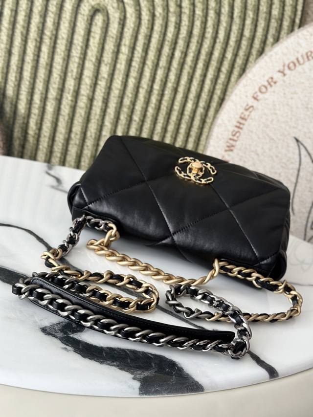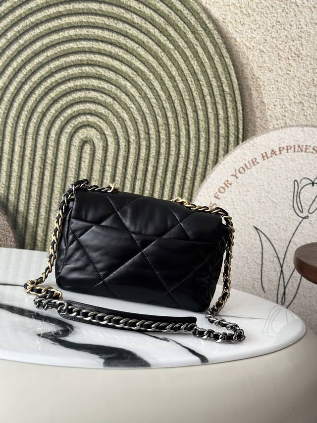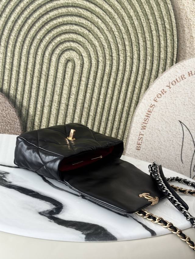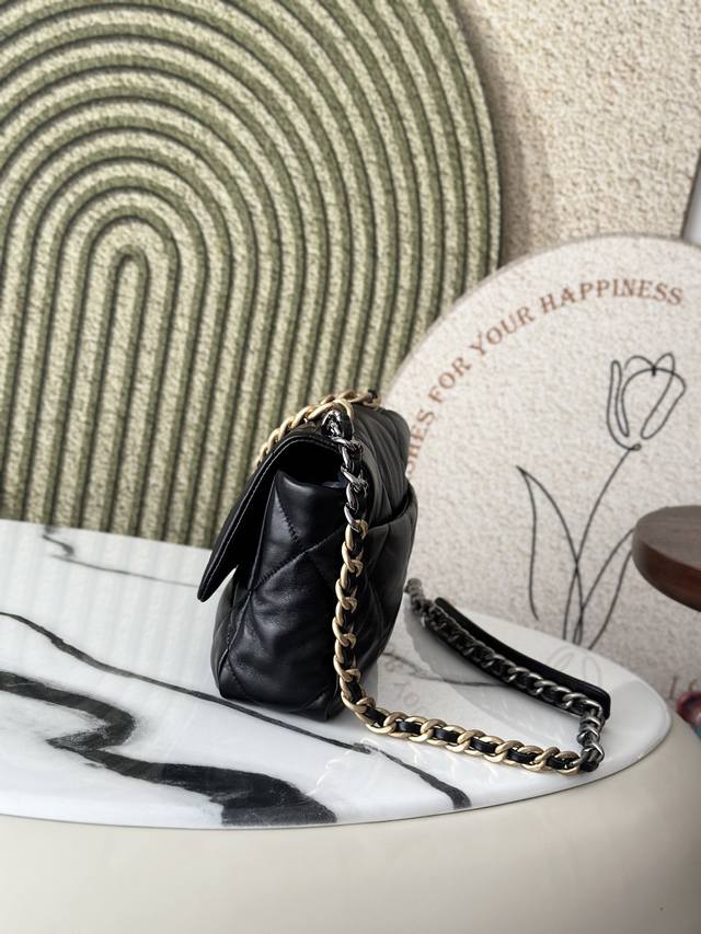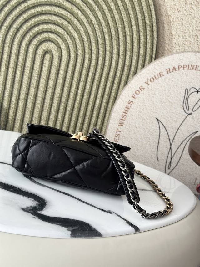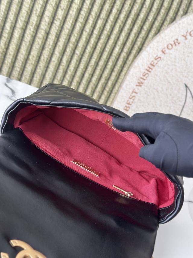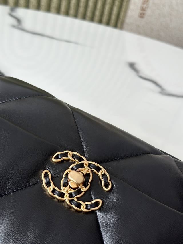 Chanel 19 goatskin flap bag in stock. The Chanel 19 handbag is the last design that fashion legend Karl Lagerfeld participated in during his lifetime. It features amplified quilted patterns and a leather-and-chain design, preserving the classic design while enhancing practicality and comfort. The name 19, like 2.55, is a bag named after a time. So, you instantly know the year it was born, and it also represents Ms. Chanel's birthday. Made of imported goatskin, the leather is delicate, soft, and feels very fluffy. Dimensions: 26*16*9cm. 1 160