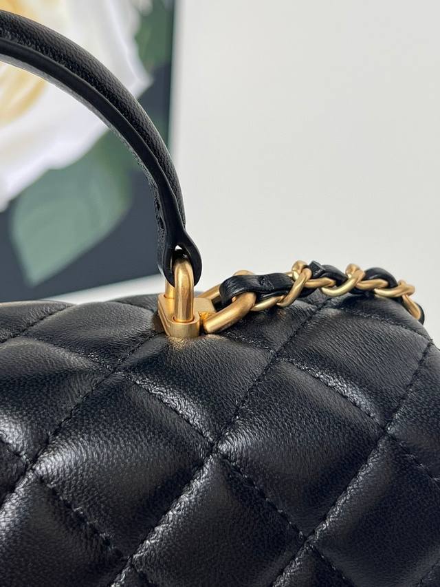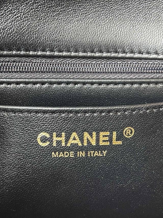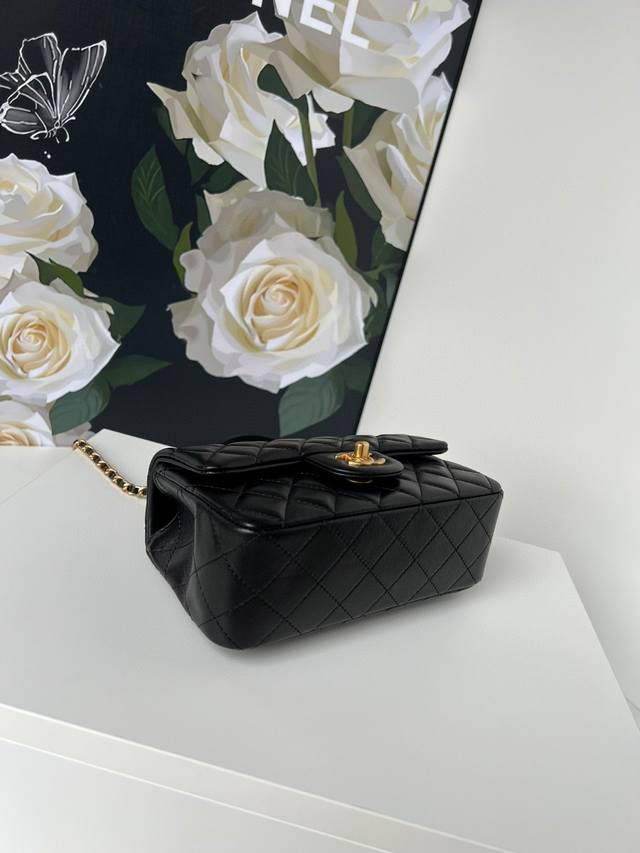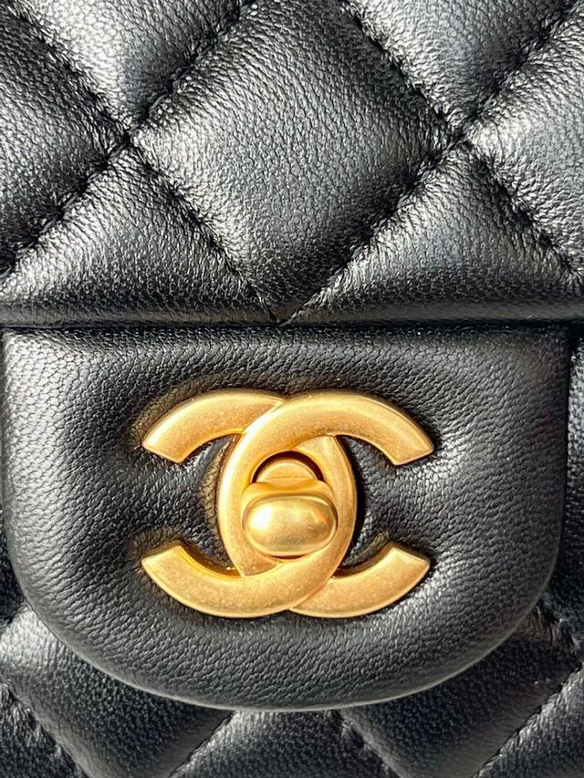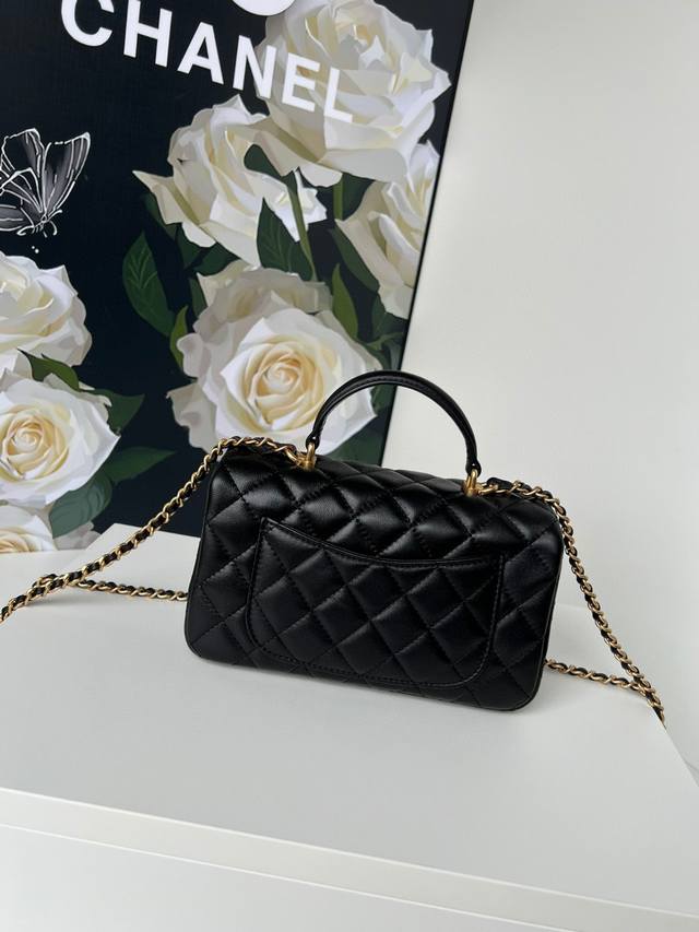 Chanel 2025 Early Spring New Mini Cf Handle As2431. A classic quilted flap bag with a delicate chain handle. Made of supple patent leather, this handbag stands out, embodying timeless elegance. Dimensions: 20 x 12 x 6 cm.