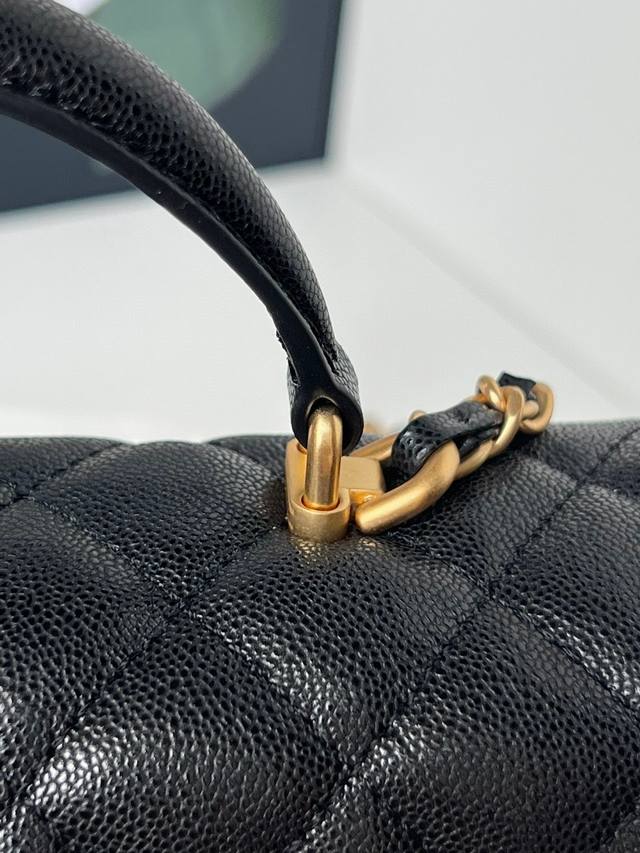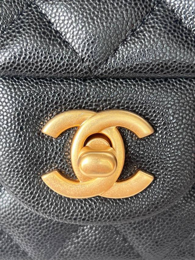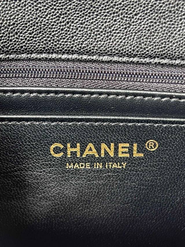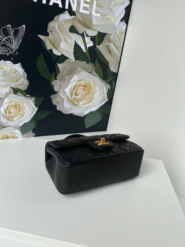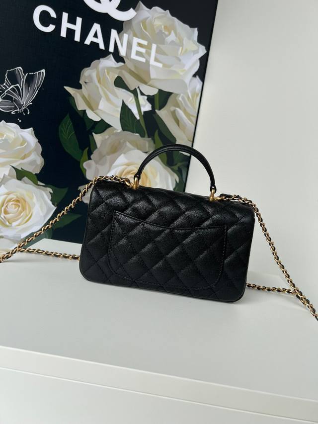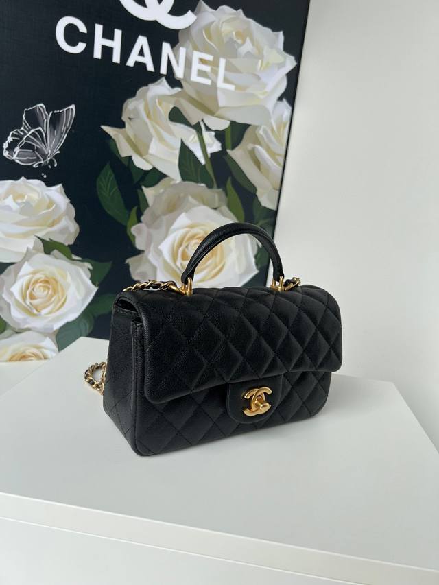 Chanel 21K Latest Mini CF Handle Bag As2431. A classic quilted flap bag with a delicate, classic chain handle. Made of sesame-grain calfskin: a refined handbag that stands out and embodies timeless elegance. Dimensions: 20 x 12 x 6 cm.