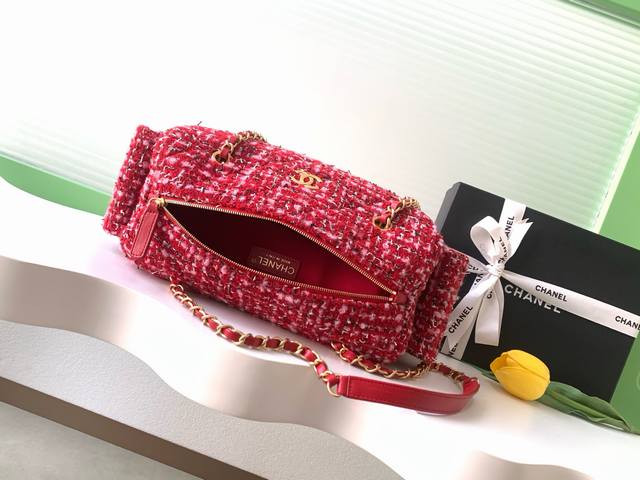 Chanel 25K Red Fabric Bowling Bag DDD The pebbled leather bowling bag paired with brushed hardware exudes a retro feel DDD Two small side pockets add a touch of design DDD The interior is incredibly spacious, making it a truly practical choice for autumn and winter DDD Style number As5791 DDD Dimensions 18.5-27-13.5 DDD Comes with packaging DDD