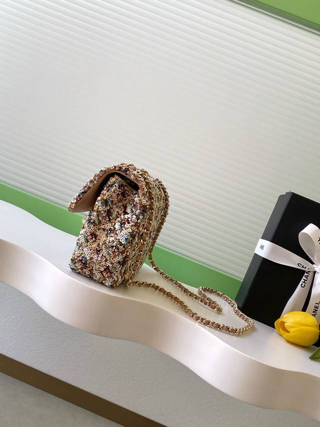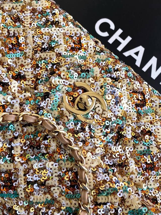 Chanel CF Super Sparkling Sequined So Black - A Street Style Must-Have! Absolutely Stunning! A rare and incredibly popular sequined bag with exceptional value. The most worthwhile bag to buy this season! The sequined color is dazzling and irresistible, amplifying its charm and elegance. Elegance, fashion, and trendiness are its hallmarks. It's also perfect as an evening bag. A bag you can treasure for a lifetime. Style number As4561. Size 14-21-8. Comes with packaging.