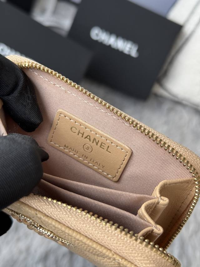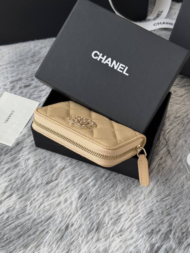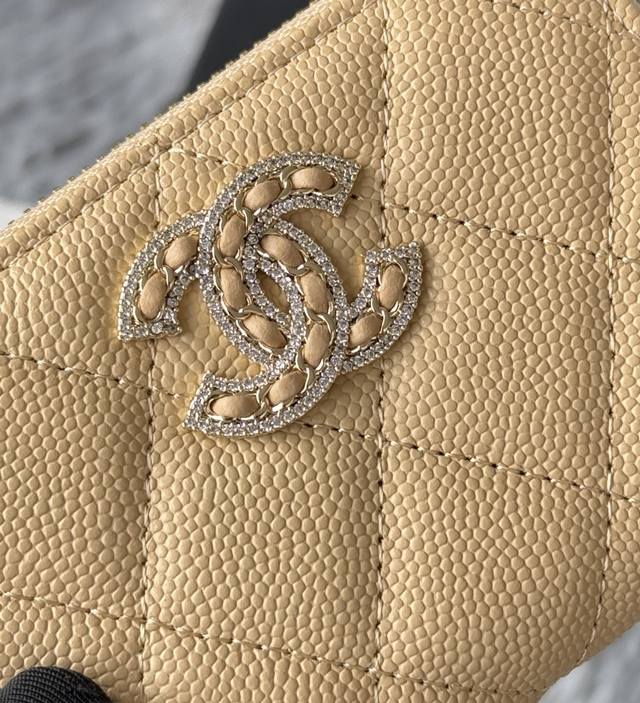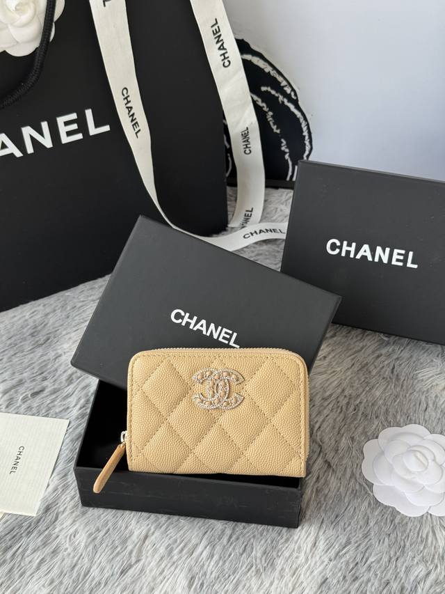Chanel Classic Black Zippered Caviar Card Holder with Rhinestones. It sparkles in the sunlight. The double C logo is exquisitely crafted. The rhinestones and leather chain are absolutely stunning. Style Number: A. Size: 11.2*7.8*2.5cm.