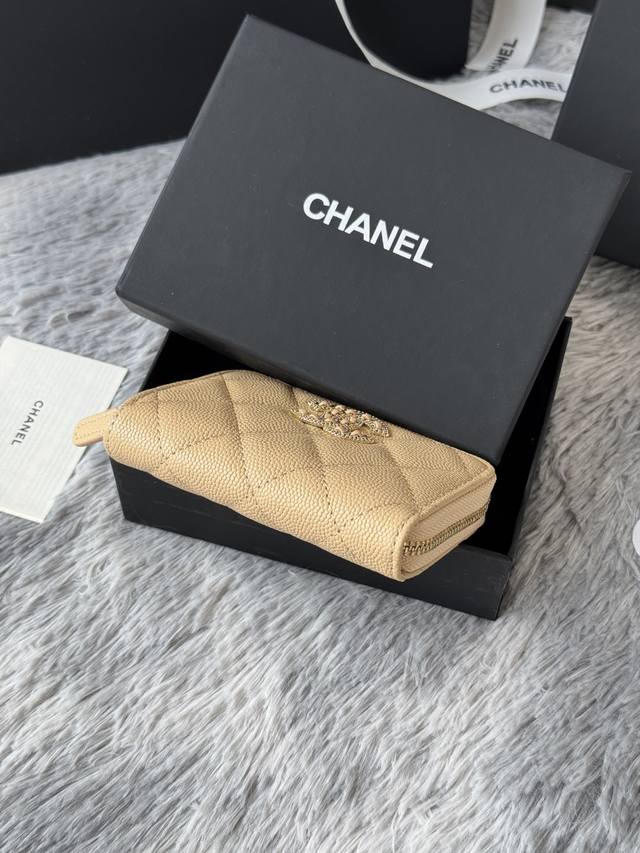 Chanel Classic Black Zippered Caviar Card Holder with Rhinestones. It sparkles i