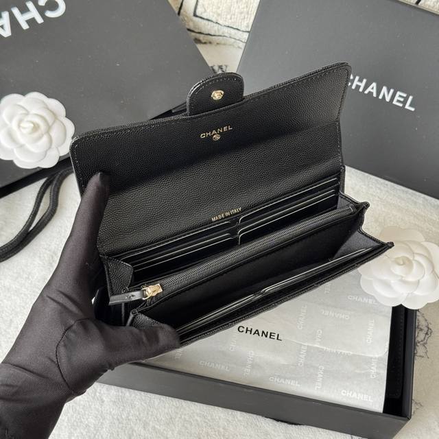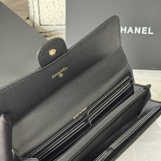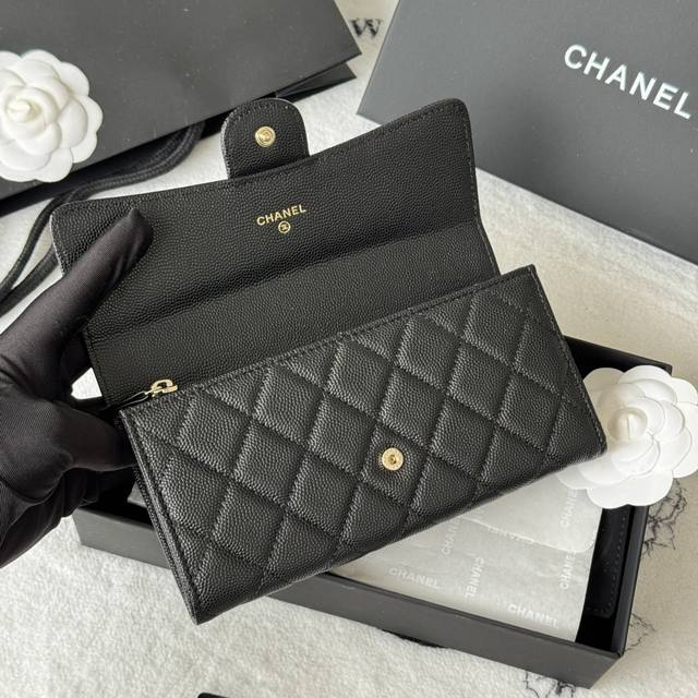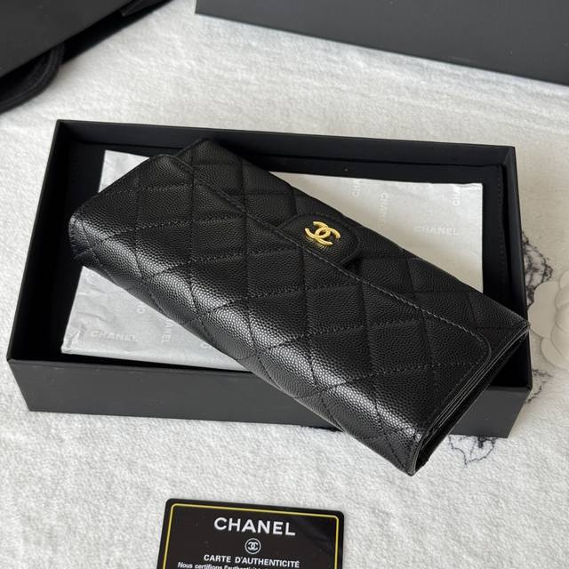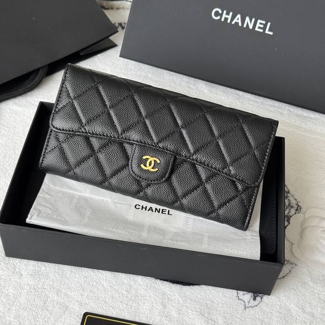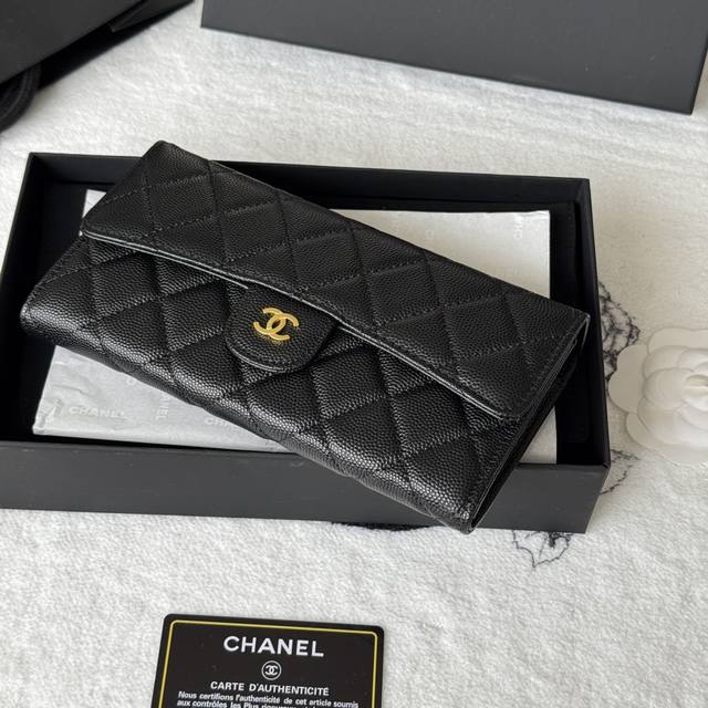 Chanel classic CF long wallet has arrived! Made of imported caviar-patterned cowhide with a diamond quilting, it has no coin pocket on the back. The black lining and pull tab storage make it convenient and quick to use. Very stylish! The bright gold and silver hardware is very fashionable. The wallet has a large capacity, enough to fit a plus-sized phone, and has multiple card slots, perfect for those with many cards! Style number: A80758 Dimensions: 10.5*19.*3cm