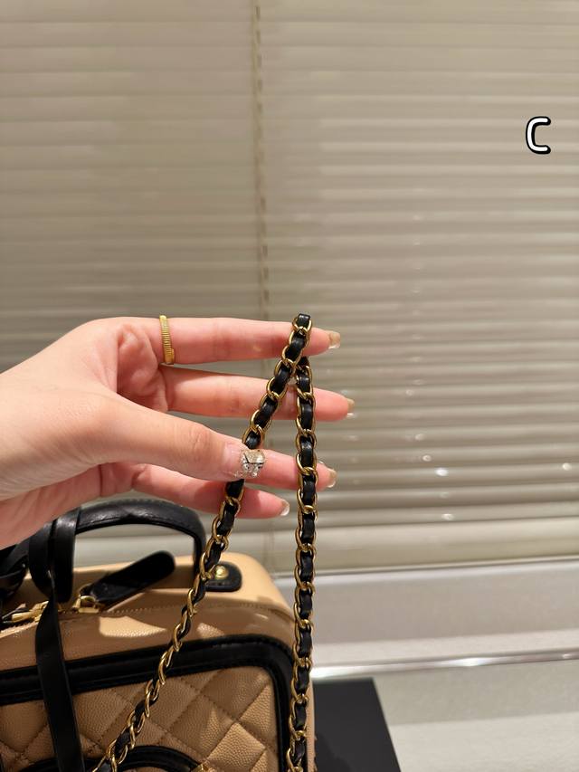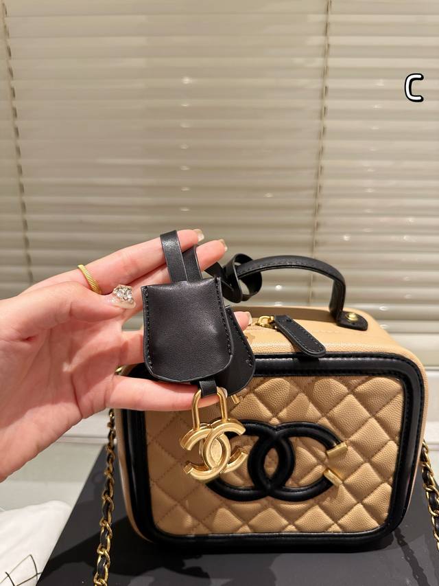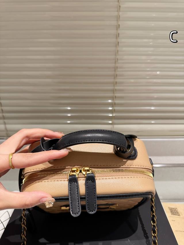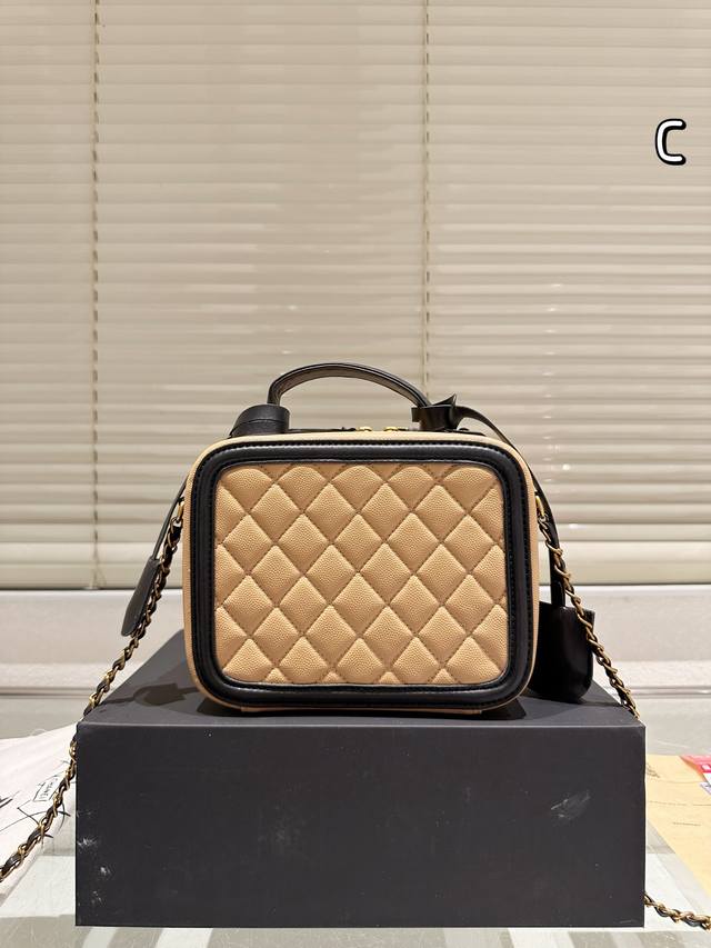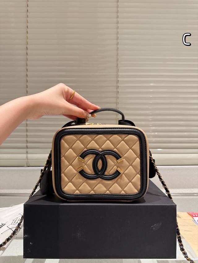 Chanel Upgrade Chanel's new box cosmetic bag is made of caviar fabric, showing t