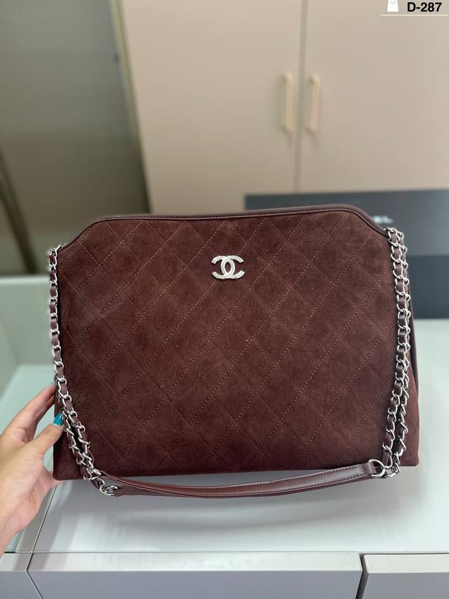 Chanel Vintage frosted chain tote is very lethal! ! The atmosphere is full of Chanel frosted brown chain tote is so beautiful and perfect for autumn and winter. D-287 size 38