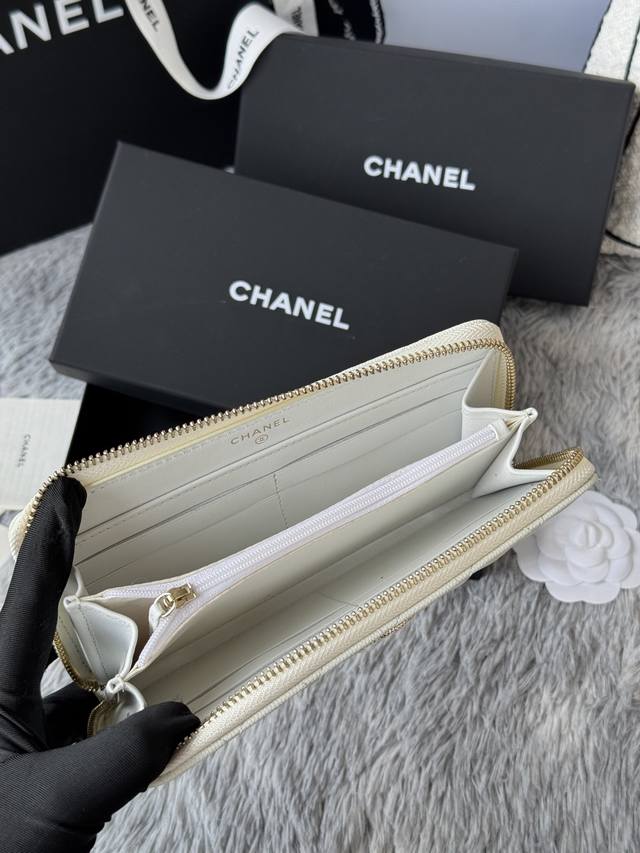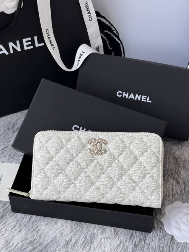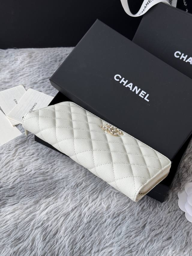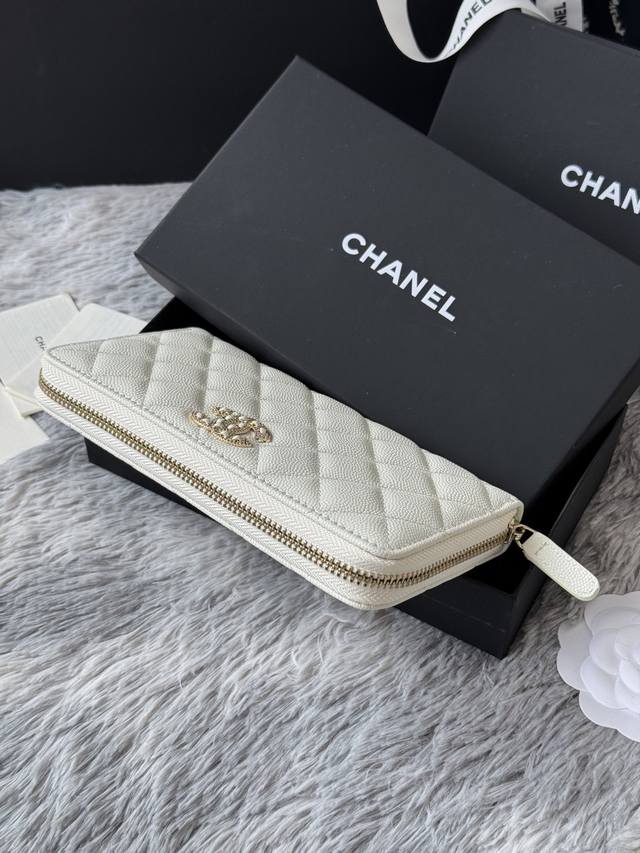 Chanel zippered long wallet arrived! Made of cowhide with a new Luogo design, featuring exquisite details including a diamond-encrusted side. Style number AB. Size: 10*19.5*2.5cm.