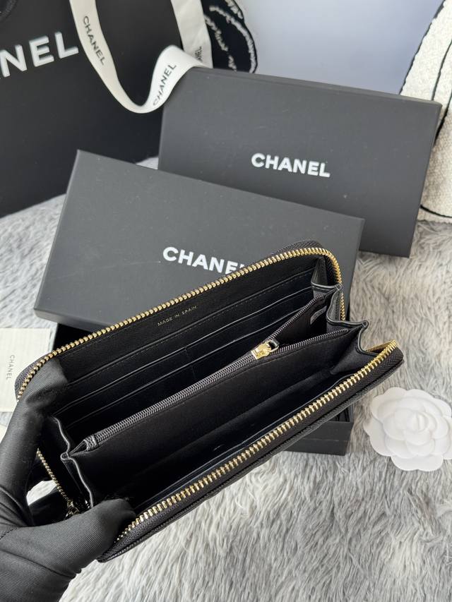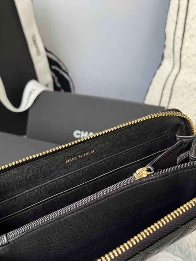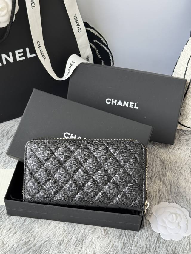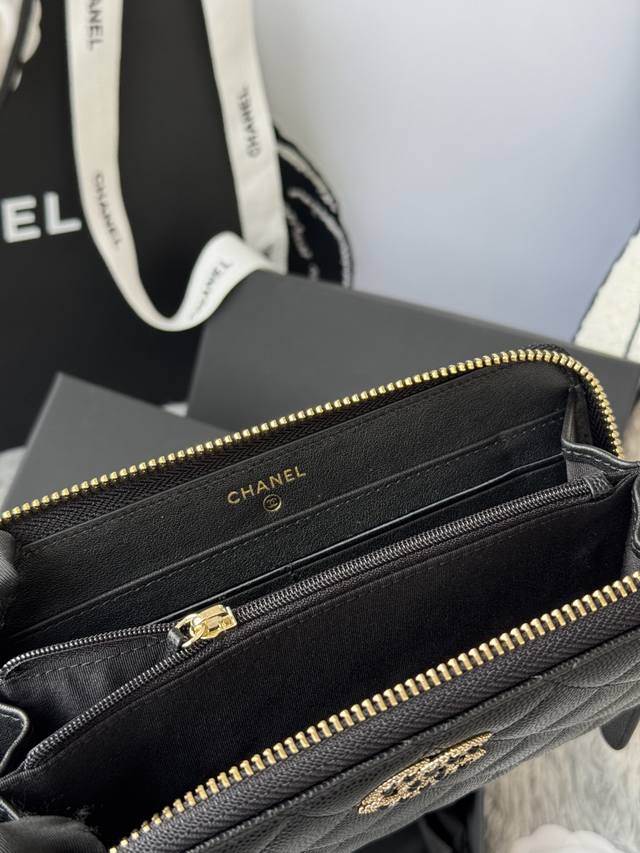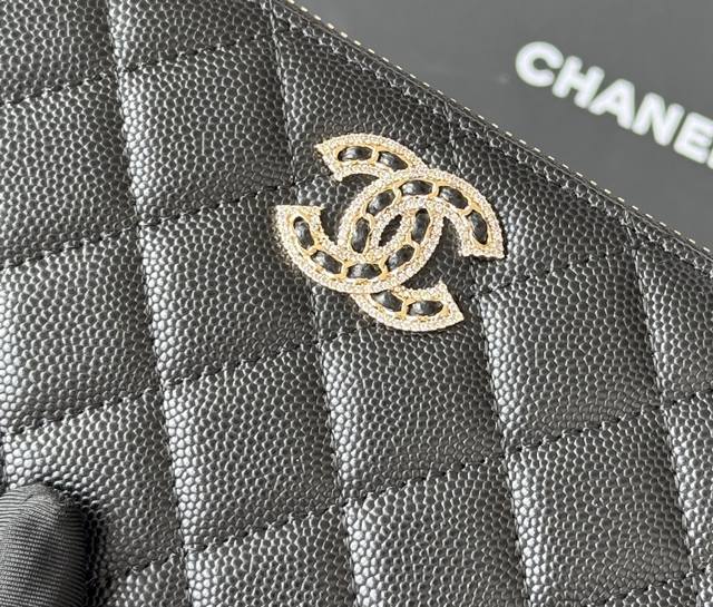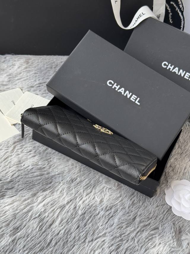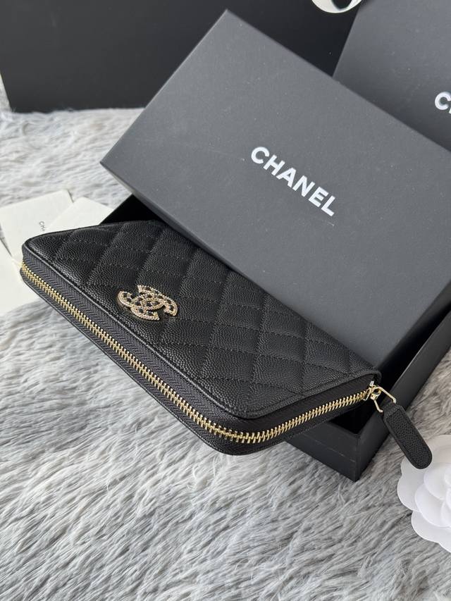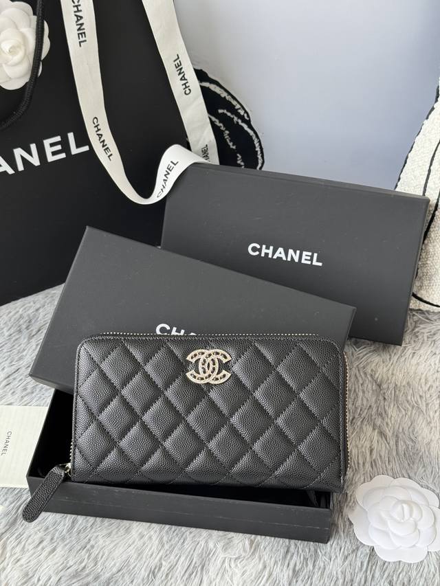 Chanel zippered long wallet arrived! Made of cowhide with a new Luogo design, featuring exquisite details including a diamond-encrusted side. Style number AB. Size: 10*19.5*2.5cm.